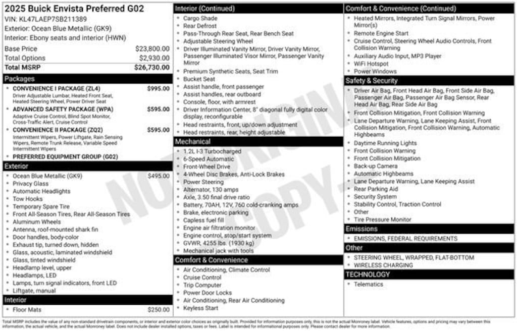 An American Icon. A turbocharger is also included as an economical means of increasing performance. Comfort and convenience were prioritized within, evidenced by amenities such as: air conditioning, heated door mirrors, and cruise control. Smooth gearshifts are achieved thanks to the efficient 3 cylinder engine, and for added security, dynamic Stability Control supplements the drivetrain.