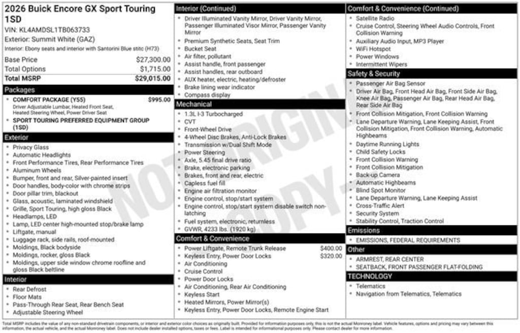 It delivers plenty of power and excellent gas mileage! Turbocharger technology provides forced air induction, enhancing performance while preserving fuel economy. Top features include air conditioning, a rear window wiper, tilt steering wheel, and cruise control. It features a front-wheel-drive platform, an automatic transmission, and an efficient 3 cylinder engine.