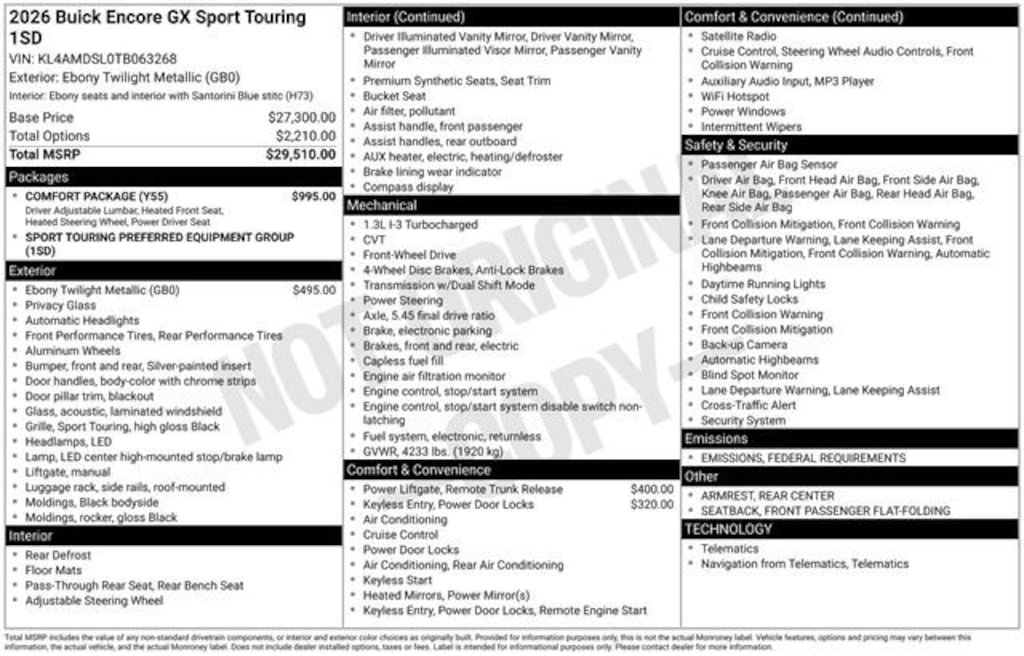 Captivating drivers with alluring style, versatile practicality and gas sipping efficiency! A turbocharger further enhances performance, while also preserving fuel economy. Top features include a split folding rear seat, heated door mirrors, cruise control, and remote keyless entry. It features a front-wheel-drive platform, an automatic transmission, and an efficient 3 cylinder engine.