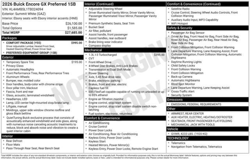 Performance, ride, and head-turning good looks! The engine breathes better thanks to a turbocharger, improving both performance and economy. This model accommodates 5 passengers comfortably, and provides features such as: a rear window wiper, an outside temperature display, and more. It features an automatic transmission, front-wheel drive, and an efficient 3 cylinder engine.