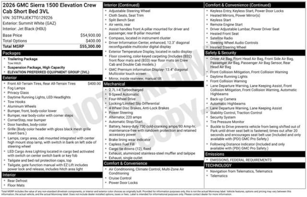 - Warranty: <<< Preliminary 2026 Warranty >>>