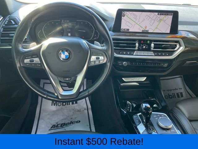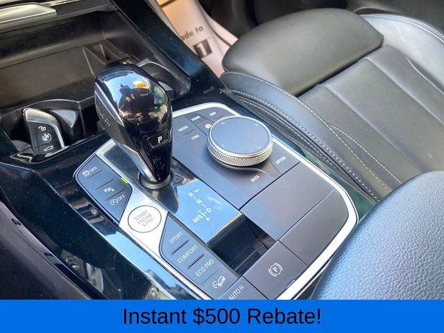 12 Speakers, 3.385 Axle Ratio, 4-Wheel Disc Brakes, ABS brakes, Air Conditioning, Alloy wheels, AM/FM Radio, AM/FM radio: SiriusXM with 360L, Apple CarPlay & Android Auto Compatibility, Auto High-beam Headlights, Auto-dimming door mirrors, Auto-dimming Rear-View mirror, Automatic temperature control, BMW Assist eCall, BMW TeleServices, Brake assist, Bumpers: body-color, Connected Package Pro, ConnectedDrive Services, Delay-off headlights, Driver door bin, Driver vanity mirror, Dual front impact airbags, Dual front side impact airbags, Electronic Stability Control, Emergency communication system: BMW Assist eCall, Enhanced Bluetooth, Exterior Parking Camera Rear, Four wheel independent suspension, Front anti-roll bar, Front Bucket Seats, Front Center Armrest, Front dual zone A/C, Front reading lights, Fully automatic headlights, Garage door transmitter, Genuine wood dashboard insert, Genuine wood door panel insert, Heated door mirrors, Hi-Fi Sound System, Illuminated entry, Knee airbag, Low tire pressure warning, Memory seat, Navigation, Navigation System, Occupant sensing airbag, Outside temperature display, Overhead airbag, Panic alarm, Passenger door bin, Passenger vanity mirror, Perforated SensaTec Upholstery, Power door mirrors, Power driver seat, Power Front Seats, Power Liftgate, Power passenger seat, Power steering, Power windows, Radio data system, Rain sensing wipers, Rear air conditioning, Rear anti-roll bar, Rear reading lights, Rear seat center armrest, Rear window defroster, Rear window wiper, Remote keyless entry, Roof rack: rails only, Security system, SiriusXM w/360L, Speed control, Speed-sensing steering, Speed-Sensitive Wipers, Split folding rear seat, Spoiler, Sport Seats, Sport steering wheel, Steering wheel mounted audio controls, Tachometer, Telescoping steering wheel, Tilt steering wheel, Traction control, Trip computer, Turn signal indicator mirrors, Variably intermittent wipers, Wheels: 19 x 7.5 Y-Spoke (Style 693), WiFi Hotspot.