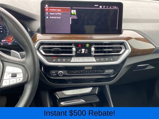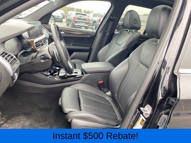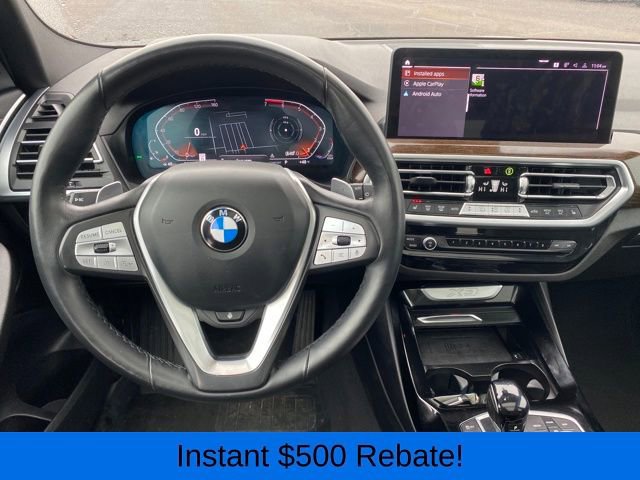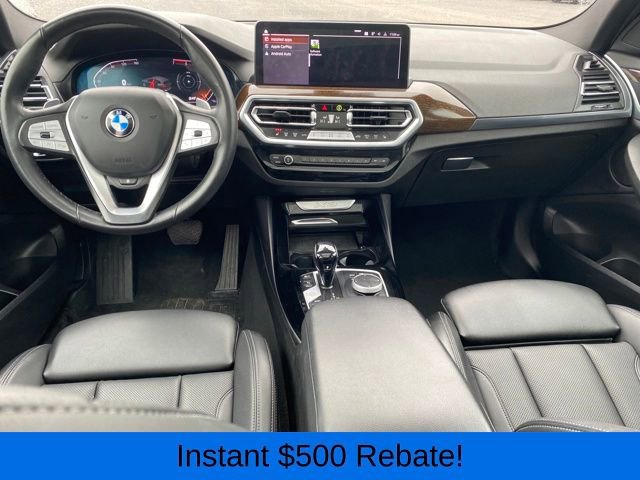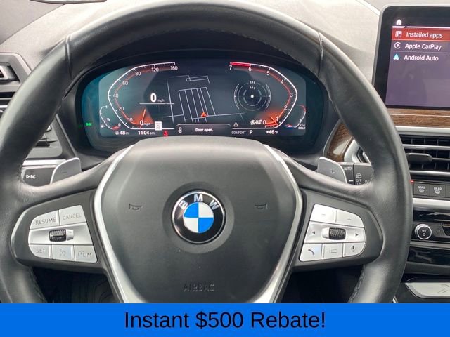 Head-Up Display, Heated Front Seats, Heated Steering Wheel, Live Cockpit Pro w/Navigation, Lumbar Support, Navigation System, Panoramic Moonroof, Premium Package, 12 Speakers, 3.385 Axle Ratio, 4-Wheel Disc Brakes, ABS brakes, Air Conditioning, Alloy wheels, AM/FM Radio, AM/FM radio: SiriusXM, Apple CarPlay & Android Auto Compatibility, Auto High-beam Headlights, Auto-dimming door mirrors, Auto-dimming Rear-View mirror, Automatic temperature control, BMW Assist eCall, BMW TeleServices, Brake assist, Bumpers: body-color, Connected Package Pro, ConnectedDrive Services, Delay-off headlights, Driver door bin, Driver vanity mirror, Dual front impact airbags, Dual front side impact airbags, Electronic Stability Control, Emergency communication system: BMW Assist eCall, Enhanced USB & Bluetooth w/Smartphone Integration, Exterior Parking Camera Rear, Four wheel independent suspension, Front anti-roll bar, Front Bucket Seats, Front Center Armrest, Front dual zone A/C, Front reading lights, Fully automatic headlights, Garage door transmitter, Genuine wood dashboard insert, Genuine wood door panel insert, Heated door mirrors, Hi-Fi Sound System, Illuminated entry, Knee airbag, Leather steering wheel, Low tire pressure warning, Memory seat, Navigation, Occupant sensing airbag, Outside temperature display, Overhead airbag, Panic alarm, Passenger door bin, Passenger vanity mirror, Perforated SensaTec Upholstery, Power door mirrors, Power driver seat, Power Front Seats, Power Liftgate, Power passenger seat, Power steering, Power windows, Radio data system, Rain sensing wipers, Rear air conditioning, Rear anti-roll bar, Rear reading lights, Rear seat center armrest, Rear window defroster, Rear window wiper, Remote keyless entry, Security system, SiriusXM w/360L & 1 Yr Platinum Plan Subscription, Speed control, Speed-sensing steering, Speed-Sensitive Wipers, Split folding rear seat, Spoiler, Sport Seats, Sport steering wheel, Steering wheel mounted audio controls, Tachometer, Telescoping steering wheel, Tilt steering wheel, Traction control, Trip computer, Turn signal indicator mirrors, Variably intermittent wipers, Wheels: 19 x 7.5 Y-Spoke (Style 693), WiFi Hotspot, Head-Up Display, Heated Front Seats, Heated Steering Wheel, Live Cockpit Pro w/Navigation, Lumbar Support, Navigation System, Panoramic Moonroof, Premium Package.