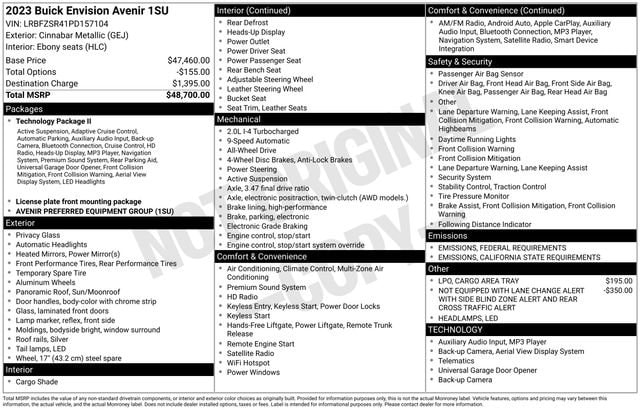 Bose Premium 9-Speaker Audio System Feature, Navigation System, 3.47 Final Drive Axle Ratio, 4-Wheel Disc Brakes, 8-Way Power Driver Seat Adjuster, 9 Speakers, ABS brakes, Air Conditioning, Alloy wheels, AM/FM radio: SiriusXM, Apple CarPlay/Android Auto, Auto High-beam Headlights, Auto-dimming door mirrors, Auto-dimming Rear-View mirror, Automatic temperature control, Brake assist, Bumpers: body-color, Cargo Area Tray (LPO), Compass, Delay-off headlights, Driver door bin, Driver vanity mirror, Dual front impact airbags, Dual front side impact airbags, Electronic Stability Control, Emergency communication system: OnStar and Buick connected services capable, Exterior Parking Camera Rear, Following Distance Indicator, Forward Collision Alert, Four wheel independent suspension, Front anti-roll bar, Front Bin Center Console USB Ports, Front Bucket Seats, Front Center Armrest, Front dual zone A/C, Front Passenger 8-Way Power Seat Adjuster, Front Pedestrian Braking, Front reading lights, Fully automatic headlights, Garage door transmitter, HD Radio, Heads-Up Display, Heated door mirrors, Heated Driver & Front Passenger Seats, Heated front seats, Heated Rear Outboard Seating Positions, Heated rear seats, Heated steering wheel, Illuminated entry, IntelliBeam Headlamp Control w/Auto High Beam, Knee airbag, Lane Keep Assist w/Lane Departure Warning, Low tire pressure warning, Memory Card Receptacle Audio System Feature, Memory seat, Not Equipped w/Lane Change & Rear Cross Traffic Alerts, Occupant sensing airbag, Outside temperature display, Overhead airbag, Overhead console, Panic alarm, Passenger door bin, Passenger vanity mirror, Perforated Leather-Appointed Seat Trim, Power door mirrors, Power driver seat, Power Liftgate, Power moonroof, Power passenger seat, Power steering, Power windows, Preferred Equipment Group 1SU, Premium audio system: Bose, Radio data system, Radio: Buick Infotainment System AM/FM w/Nav, Rear anti-roll bar, Rear reading lights, Rear seat center armrest, Rear window defroster, Rear window wiper, Remote keyless entry, Security system, SiriusXM Radio, Speed control, Split folding rear seat, Spoiler, Steering wheel mounted audio controls, Telescoping steering wheel, Tilt steering wheel, Traction control, Trip computer, USB Charging-Only Ports, Variably intermittent wipers, Ventilated Driver & Front Passenger Seats, Ventilated front seats, Wheels: 20 Aluminum w/Avenir Pearl Nickel Finish, Wireless Apple CarPlay/Wireless Android Auto, Bose Premium 9-Speaker Audio System Feature, Navigation System.