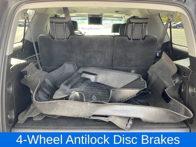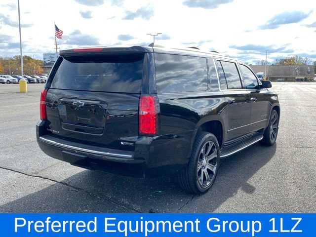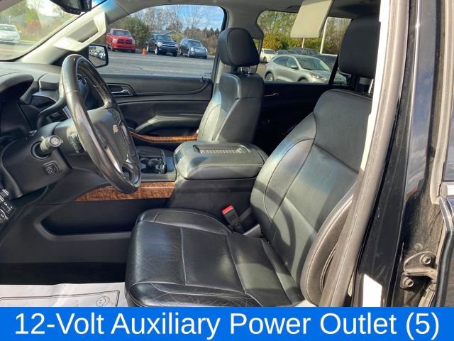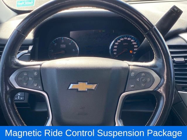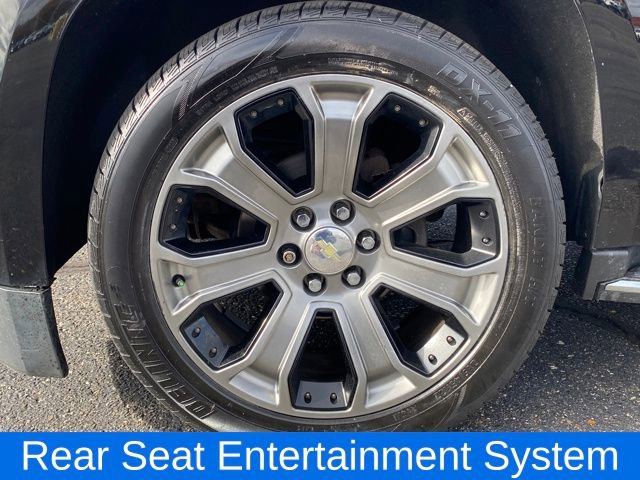 12-Volt Auxiliary Power Outlet (5), 1st & 2nd Row Color-Keyed Carpeted Floor Mats, 2-Speed Active Electronic AutoTrac Transfer Case, 3.42 Rear Axle Ratio, 3rd Row 60/40 Power Fold Split-Bench, 4-Wheel Antilock Disc Brakes, 6-Way Power Front Passenger Seat Adjuster, Apple CarPlay/Android Auto, Auto-Dimming Inside Rear-View Mirror, Black Assist Steps, Bose Centerpoint Premium 10-Speaker Surround Sound, Color-Keyed Carpeting Floor Covering, Driver Inboard & Front Passenger Airbags, Electronic Cruise Control w/Set & Resume Speed, Enhanced Driver Alert Package, Exterior Parking Camera Rear, Floor Console w/Storage Area, Fog Lamps, Forward Collision Alert, Front & Rear Park Assist, Hands Free Power Liftgate, HD Radio, Heated & Ventilated Driver & Front Passenger Seats, Heated 2nd Row Outboard Seats, Heated Leather Wrapped Steering Wheel, Integrated Trailer Brake Controller, Intellibeam Headlamps w/Automatic High Beam On/Off, Lane Change Alert w/Side Blind Zone Alert, Lane Keep Assist w/Lane Departure Warning, Low Speed Forward Automatic Braking, Magnetic Ride Control Suspension Package, Max Trailering Package, Memory Settings, Navigation System, OnStar Basic Plan For 5 Years, Passive Entry System, Perforated Leather-Appointed Seat Trim, Power Folding & Adjustable Heated Outside Mirrors, Power Liftgate, Power Release 2nd Row Bucket Seats, Power Tilt & Telescoping Steering Column, Power Tilt-Sliding Sunroof w/Express-Open/Close, Power-Adjustable Accelerator & Brake Pedals, Preferred Equipment Group 1LZ, Push Button Keyless Start, Rear Cross-Traffic Alert, Rear Seat Entertainment System, Remote Vehicle Start, Roof-Mounted Luggage Rack Side Rails, Safety Alert Seat, SiriusXM Satellite Radio, Sun, Entertainment & Destinations Package, Universal Home Remote, Wheels: 20 x 9 Polished-Aluminum, Wireless Charging, 10 Speakers, 3.08 Rear Axle Ratio, 3rd row seats: split-bench, 4-Wheel Disc Brakes, ABS brakes, Adaptive suspension, Adjustable pedals, Air Conditioning, Alloy wheels, AM/FM radio: SiriusXM, Auto High-beam Headlights, Auto-dimming door mirrors, Auto-dimming Rear-View mirror, Automatic temperature control, Bodyside moldings, Brake assist, Bumpers: body-color, CD player, Compass, Delay-off headlights, Driver door bin, Driver vanity mirror, Dual front impact airbags, Dual front side impact airbags, Electronic Stability Control, Emergency communication system: OnStar Guidance, Front anti-roll bar, Front Bucket Seats, Front Center Armrest, Front dual zone A/C, Front fog lights, Front reading lights, Front wheel independent suspension, Fully automatic headlights, Garage door transmitter, Headphones, Heated & Ventilated Front Reclining Bucket Seats, Heated door mirrors, Heated front seats, Heated rear seats, Heated steering wheel, High-Intensity Discharge Headlights, Illuminated entry, Leather Shift Knob, Low tire pressure warning, Memory seat, Occupant sensing airbag, Outside temperature display, Overhead airbag, Overhead console, Panic alarm, Passenger door bin, Passenger vanity mirror, Pedal memory, Power door mirrors, Power driver seat, Power passenger seat, Power steering, Power windows, Radio: Chevrolet MyLink AM/FM Stereo w/Navigation, Rain sensing wipers, Rear air conditioning, Rear anti-roll bar, Rear audio controls, Rear reading lights, Rear window defroster, Rear window wiper, Remote keyless entry, Roof rack: rails only, Security system, Single-Slot CD/MP3 Player, SiriusXM NavTraffic, Speed control, Speed-sensing steering, Split folding rear seat, Spoiler, Steering wheel memory, Steering wheel mounted audio controls, Tachometer, Telescoping steering wheel, Tilt steering wheel, Traction control, Trip computer, Turn signal indicator mirrors, Variably intermittent wipers, Ventilated front seats, Voltmeter, 12-Volt Auxiliar