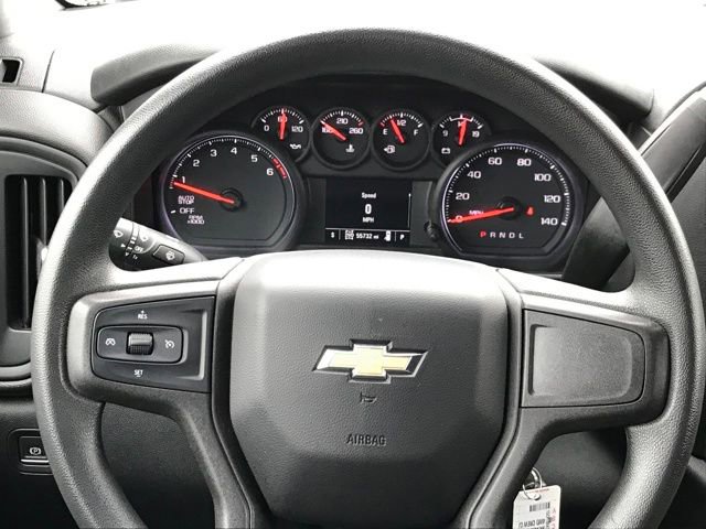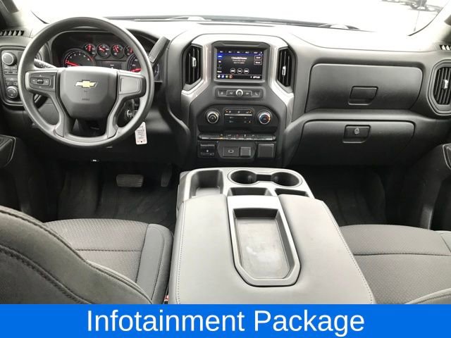 Custom Convenience Package, Custom Value Package, Infotainment Package, Trailering Package, 120-Volt Bed Mounted Power Outlet, 120-Volt Instrument Panel Power Outlet, 170 Amps Alternator, 220 Amps Alternator, 3.42 Rear Axle Ratio, 3.5 Diagonal Monochromatic Display, 4-Wheel Disc Brakes, 40/20/40 Front Split Bench Seat, 4G LTE Wi-Fi Hot Spot Capable, 6 Speakers, ABS brakes, Air Conditioning, All-Weather Floor Liner (LPO), Alloy wheels, Apple CarPlay/Android Auto, Automatic Stop/Start, Bluetooth® For Phone, Body Color Grille, Brake assist, Bumpers: body-color, Chevrolet Connected Access Capable, Cloth Seat Trim, Color-Keyed Carpeting Floor Covering, Compass, Deep-Tinted Glass, Delay-off headlights, Driver door bin, Driver vanity mirror, Dual front impact airbags, Dual front side impact airbags, Electric Rear-Window Defogger, Electronic Stability Control, Exterior Parking Camera Rear, EZ Lift Power Lock & Release Tailgate, Front 40/20/40 Split-Bench Seat, Front anti-roll bar, Front Black Bowtie Emblem (LPO), Front Center Armrest, Front Frame-Mounted Black Recovery Hooks, Front reading lights, Front Rubberized Vinyl Floor Mats, Front wheel independent suspension, Fully automatic headlights, Heated door mirrors, Heavy Duty Suspension, Heavy-Duty Rear Locking Differential, Hitch Guidance, Illuminated entry, Integrated Trailer Brake Controller, LED Cargo Area Lighting, Locking Tailgate, Low tire pressure warning, Manual Tilt-Wheel Steering Column, Occupant sensing airbag, OnStar & Chevrolet Connected Services Capable, Outside temperature display, Overhead airbag, Overhead console, Panic alarm, Passenger door bin, Passenger vanity mirror, Polished Exhaust Tip, Power Door Locks, Power door mirrors, Power Front Windows w/Driver Express Up/Down, Power Front Windows w/Passenger Express Down, Power Rear Windows w/Express Down, Power steering, Power windows, Preferred Equipment Group 1CX, Radio data system, Radio: Chevrolet Infotainment 3 System, Rear 60/40 Folding Bench Seat (Folds Up), Rear reading lights, Rear Rubberized-Vinyl Floor Mats, Rear step bumper, Remote Keyless Entry, Remote keyless entry, Remote Vehicle Starter System, Single-Zone Manual/Semi-Automatic Air Conditioning, SiriusXM Radio, Speed control, Speed-sensing steering, Split folding rear seat, Steering Wheel Mounted Electronic Cruise Control, Tachometer, Theft Deterrent System (Unauthorized Entry), Tilt steering wheel, Traction control, Trip computer, Variably intermittent wipers, Voltmeter, Wheel Locks (Set of 4) (LPO), Wheels: 20 x 9 Bright Silver Painted Aluminum, Custom Convenience Package, Custom Value Package, Infotainment Package, Trailering Package.