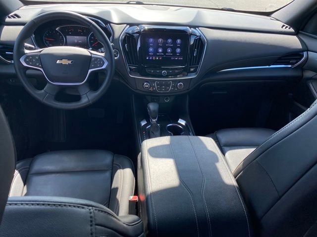 1st & 2nd Row Premium Carpeted Floor Mats (LPO), 3.49 Axle Ratio, 3rd Row Premium Carpeted Floor Mat (LPO), 3rd row seats: split-bench, 4-Wheel Disc Brakes, 6 Speakers, 6-Speaker Audio System Feature, 6-Way Power Front Passenger Seat, 8-Way Power Driver Seat Adjuster, ABS brakes, Air Conditioning, Alloy wheels, AM/FM radio: SiriusXM with 360L, Apple CarPlay/Android Auto, Auto High-beam Headlights, Automatic temperature control, Black Roof Rails, Brake assist, Bright Thatcham Wheel Locks (LPO), Bumpers: body-color, Compass, Delay-off headlights, Driver door bin, Driver vanity mirror, Dual front impact airbags, Dual front side impact airbags, Electronic Stability Control, Emergency communication system, Exterior Parking Camera Rear, Four wheel independent suspension, Front anti-roll bar, Front Bucket Seats, Front Center Armrest, Front dual zone A/C, Front Passenger 2-Way Power Lumbar, Front reading lights, Fully automatic headlights, Garage door transmitter, Heated door mirrors, Heated Driver & Front Passenger Seats, Heated front seats, Heated steering wheel, Heavy-Duty Cooling System, Hitch Guidance w/Hitch View, Illuminated entry, Leather steering wheel, Leather-Appointed Seat Trim, Low tire pressure warning, Occupant sensing airbag, Outside temperature display, Overhead airbag, Overhead console, Panic alarm, Passenger door bin, Passenger vanity mirror, Power door mirrors, Power Driver Lumbar Control, Power driver seat, Power Liftgate, Power passenger seat, Power steering, Power windows, Preferred Equipment Group 3LT, Premium audio system: Chevrolet Infotainment 3 Plus, Premium Carpet Floor Mat Package (LPO), Radio data system, Radio: Chevrolet Infotainment 3 Plus System, Rear air conditioning, Rear anti-roll bar, Rear reading lights, Rear window defroster, Rear window wiper, Remote keyless entry, Security system, SiriusXM w/360L, Speed control, Speed-sensing steering, Spoiler, Steering wheel mounted audio controls, Tachometer, Telescoping steering wheel, Tilt steering wheel, Traction control, Trailering Assist Guidelines, Trailering Equipment, Trip computer, Turn signal indicator mirrors, Variably intermittent wipers, Voltmeter, Wheels: 18 Bright Silver-Painted Aluminum.