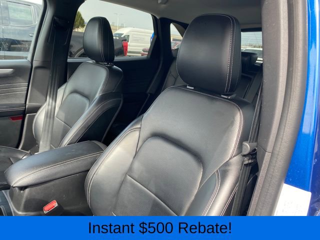 2.91 Axle Ratio, 4-Wheel Disc Brakes, 6 Speakers, ABS brakes, Air Conditioning, Alloy wheels, AM/FM radio: SiriusXM, AM/FM Stereo, Auto High-beam Headlights, Auto-dimming Rear-View mirror, Automatic temperature control, Brake assist, Bumpers: body-color, Compass, Delay-off headlights, Driver door bin, Driver vanity mirror, Dual front impact airbags, Dual front side impact airbags, Electronic Fuel Door Release, Electronic Stability Control, Emergency communication system: SYNC 4 911 Assist, Exterior Parking Camera Rear, FordPass Connect, Four wheel independent suspension, Front anti-roll bar, Front Bucket Seats, Front Center Armrest, Front dual zone A/C, Front fog lights, Front reading lights, Fully automatic headlights, Garage door transmitter, Heated ActiveX Trimmed Front Sport Contour Bucket Seats, Heated door mirrors, Heated front seats, Heated steering wheel, Illuminated entry, Knee airbag, Low tire pressure warning, Memory seat, Navigation system: Connected Navigation, Neutral Towing Capability, Occupant sensing airbag, Outside temperature display, Overhead airbag, Overhead console, Panic alarm, Passenger door bin, Passenger vanity mirror, Pedestrian Alert Sounder, Power door mirrors, Power driver seat, Power Liftgate, Power passenger seat, Power steering, Power windows, Radio data system, Rain sensing wipers, Rear anti-roll bar, Rear reading lights, Rear seat center armrest, Rear window defroster, Rear window wiper, Remote keyless entry, Security system, Speed control, Speed-sensing steering, Speed-Sensitive Wipers, Split folding rear seat, Spoiler, Steering wheel mounted audio controls, SYNC 4 w/Enhanced Voice Recognition, Telescoping steering wheel, Tilt steering wheel, Traction control, Trip computer, Variably intermittent wipers, Wheels: 19 Machined-Face Aluminum.