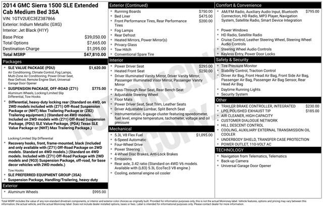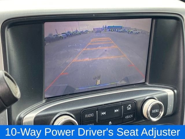 10-Way Power Driver's Seat Adjuster, 110-Volt AC Power Outlet, Dual-Zone Automatic Climate Control, Electric Rear-Window Defogger, Front Halogen Fog Lamps, Remote Vehicle Starter System, SLE Value Package, Universal Home Remote, 150 Amp Alternator, 3.42 Rear Axle Ratio, 4-Wheel Disc Brakes, 4.2 Diagonal Color Display Driver Info Center, 40/20/40 Front Split Bench Seat, 6 Speakers, 6 Rectangular Chromed Tubular Assist Steps (LPO), ABS brakes, Air Conditioning, Alloy wheels, AM/FM radio: SiriusXM, Auxiliary External Transmission Oil Cooler, Body Color Bodyside Moldings, Body Color Door Handles, Body Color Power-Adjustable Heated Outside Mirrors, Bodyside moldings, Brake assist, Bumpers: chrome, CD player, Chrome Front Bumper, Chrome Grille Surround, Chrome Rear Bumper, Cloth Seat Trim, Color-Keyed Carpeting w/Rubberized Vinyl Floor Mats, Compass, Deep-Tinted Glass, Delay-off headlights, Driver & Front Passenger Illuminated Vanity Mirrors, Driver door bin, Driver vanity mirror, Dual front impact airbags, Dual front side impact airbags, Electronic Autotrac Transfer Case, Electronic Stability Control, Emergency communication system: OnStar Directions & Connections, Exterior Parking Camera Rear, EZ Lift & Lower Tailgate, Front anti-roll bar, Front Center Armrest w/Storage, Front Frame-Mounted Black Recovery Hooks, Front reading lights, Front wheel independent suspension, Fully automatic headlights, Heated door mirrors, Heated Driver & Front Passenger Seats, Heavy Duty Suspension, Heavy-Duty Rear Locking Differential, Hill Descent Control, Illuminated entry, Integrated Trailer Brake Controller, Leather Wrapped Steering Wheel w/Cruise Controls, LED Cargo Box Lighting, Low tire pressure warning, Manual Tilt Wheel Steering Column, Occupant sensing airbag, Off-Road Suspension Package, OnStar 6 Months Directions & Connections Plan, Outside temperature display, Overhead airbag, Overhead console, Panic alarm, Passenger door bin, Passenger vanity mirror, Polished Exhaust Tip, Power door mirrors, Power steering, Power windows, Power Windows w/Driver Express Up, Preferred Equipment Group 3SA, Premium audio system: IntelliLink, Radio data system, Radio: AM/FM Stereo w/8 Diagonal Color Touch Nav., Radio: AM/FM Stereo w/8 Diagonal Color Touch Screen, Rear 60/40 Folding Bench Seat (Folds Up), Rear Bumper Cornersteps, Rear reading lights, Rear seat center armrest, Rear step bumper, Rear Vision Camera w/Dynamic Guide Lines, Rear Wheelhouse Liners, Remote Keyless Entry, Remote keyless entry, Single Slot CD/MP3 Player, Single-Zone Air Conditioning, SiriusXM Satellite & HD Radio, Speed control, Speed-sensing steering, Split folding rear seat, Spray-On Pickup Box Bed Liner, Steering Wheel Audio Controls, Steering wheel mounted audio controls, Tachometer, Theft Deterrent System (Unauthorized Entry), Tilt steering wheel, Traction control, Trailering Equipment, Trip computer, Variably intermittent wipers, Voltmeter, Wheels: 17 x 8 Bright Machined Aluminum, Wheels: 20 x 9 Ultra Bright Machined Aluminum, 10-Way Power Driver's Seat Adjuster, 110-Volt AC Power Outlet, Dual-Zone Automatic Climate Control, Electric Rear-Window Defogger, Front Halogen Fog Lamps, Remote Vehicle Starter System, SLE Value Package, Universal Home Remote.