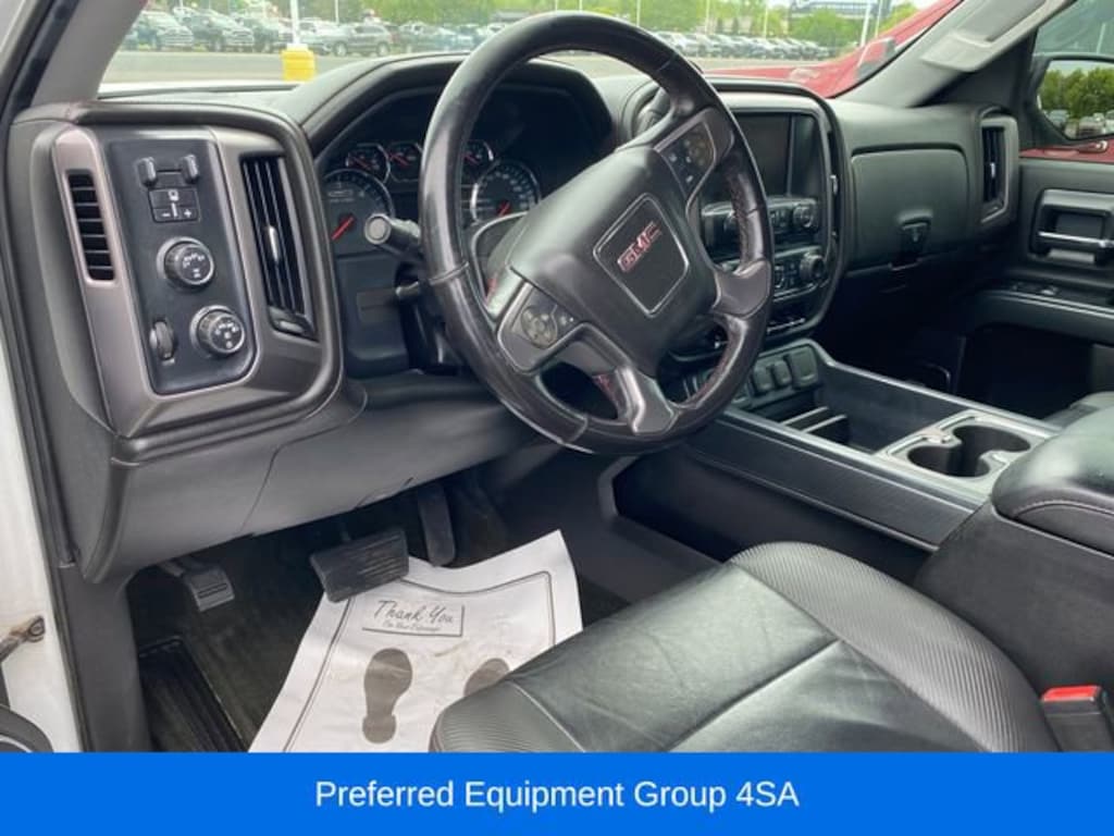 Sierra 1500 SLT, Jet Black/Spice Red All-Terrain Leather, 110-Volt AC Power Outlet, 150 Amp Alternator, 1st & 2nd Row Color-Keyed Carpeted Floor Mats, 2-Speed Active Electronic AutoTrac Transfer Case, 4.2 Diagonal Color Display Driver Info Center, 4 Round Black Tubular Assist Steps (LPO), All Terrain SLT Premium Package, All-Terrain Package, All-Weather Floor Liner (LPO), Auto-Dimming Inside Rear-View Mirror, Auxiliary External Transmission Oil Cooler, Black Mirror Caps, Body Color Bodyside Moldings, Body Color Door Handles, Body Color Lower Front Bumper, Body Color Rear Bumper w/Cornersteps, Chrome Bodyside Moldings, Chrome Door Handles, Chrome Mirror Caps, Color-Keyed Carpeting, Deep-Tinted Glass, Driver & Front Passenger Illuminated Vanity Mirrors, Dual-Zone Automatic Climate Control, Electric Rear-Window Defogger, EZ Lift & Lower Tailgate, Front Frame-Mounted Black Recovery Hooks, Front Full Feature Power Reclining Bucket Seats, Heavy-Duty Rear Locking Differential, High-Performance LED Headlamps, Leather Wrapped Heated Steering Wheel, Leather Wrapped Steering Wheel w/Cruise Controls, LED Cargo Box Lighting, LED Tailamps w/Signature, Manual Tilt/Telescoping Steering Column, Off-Road Suspension Package, OnStar 3 Month Guidance Plan, OnStar w/4G LTE, Power Adjustable Pedals, Power Folding & Adjustable Heated Outside Mirrors, Power Sliding Rear Window w/Defogger, Power Windows w/Driver Express Up & Down, Preferred Equipment Group 4SA, Rear 60/40 Folding Bench Seat (Folds Up), Rear Vision Camera, Rear Wheelhouse Liners, Remote Keyless Entry, Remote Vehicle Starter System, Single Slot CD/MP3 Player, Spray-On Pickup Box Bed Liner w/GMC Logo, Steering Wheel Audio Controls, Theft Deterrent System (Unauthorized Entry), Thin Profile LED Fog Lamps, Trailering Equipment, Ultrasonic Front & Rear Park Assist, Unique Body Color Grille Surround w/Chrome Accents, Universal Home Remote, Wheels: 18 x 8.5 Bright Machined Aluminum, Wheels: 20 x 9 Bright Machined Alum., 10-Way Power Driver's Seat Adjuster, 3.08 Rear Axle Ratio, 3.42 Rear Axle Ratio, 4-Wheel Disc Brakes, 40/20/40 Front Split Bench Seat, 6 Speakers, 6-Speaker Audio System, ABS brakes, Adjustable pedals, Air Conditioning, Alloy wheels, AM/FM radio, Auto-dimming door mirrors, Auto-dimming Rear-View mirror, Automatic temperature control, Bodyside moldings, Brake assist, Bumpers: chrome, CD player, Compass, Delay-off headlights, Driver door bin, Driver vanity mirror, Dual front impact airbags, Dual front side impact airbags, Electronic Stability Control, Emergency communication system: OnStar Guidance, Exterior Parking Camera Rear, Floor Mounted Console, Front anti-roll bar, Front Center Armrest w/Storage, Front dual zone A/C, Front fog lights, Front reading lights, Front wheel independent suspension, Fully automatic headlights, Garage door transmitter: HomeLink, HD Radio, Heated door mirrors, Heated Driver & Front Passenger Seats, Heated front seats, Heavy Duty Suspension, High-Intensity Discharge Headlights, Hill Descent Control, Illuminated entry, Integrated Trailer Brake Controller, Leather Appointed Seat Trim, Low tire pressure warning, Memory seat, Occupant sensing airbag, Outside temperature display, Overhead airbag, Overhead console, Panic alarm, Passenger door bin, Passenger vanity mirror, Power door mirrors, Power driver seat, Power passenger seat, Power steering, Power windows, Radio data system, Radio: AM/FM Stereo w/8 Diagonal Color Touch Nav., Radio: AM/FM Stereo w/8 Diagonal Color Touch Screen, Rear reading lights, Rear seat center armrest, Rear step bumper, Rear window defroster, Remote keyless entry, Security system, SiriusXM Satellite Radio, Speed control, Speed-sensing steering, Split folding rear seat, Steering