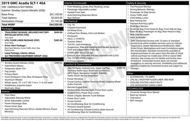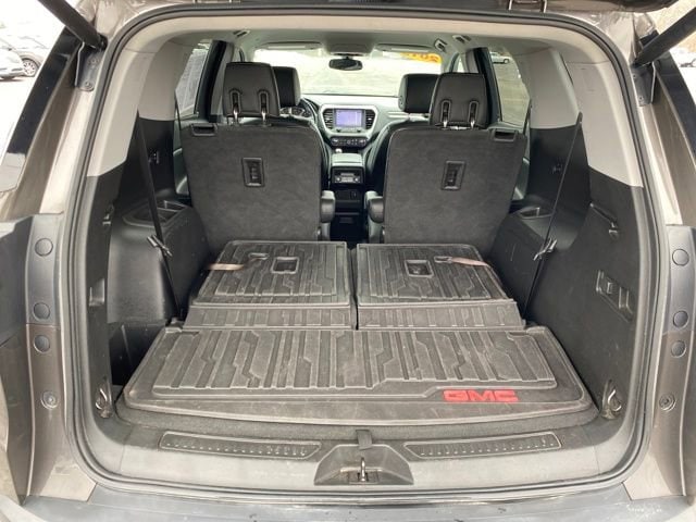 Bose Premium 8-Speaker System, 155 Amp Alternator, 170 Amp Alternator, 18 x 7.5 Aluminum (4) Wheels, 3.16 Axle Ratio, 3rd Row All-Weather Floor Liner (LPO), 3rd row seats: split-bench, 4-Wheel Disc Brakes, 6-Passenger (2-2-2 Seating Configuration), 8 Speakers, 8-Way Power Front Passenger Seat Adjuster, ABS brakes, Air Conditioning, All-Weather Floor Liner (LPO), Alloy wheels, AM/FM radio: SiriusXM, Apple CarPlay/Android Auto, Auto-dimming door mirrors, Auto-dimming Rear-View mirror, Automatic temperature control, Brake assist, Bumpers: body-color, Compass, Delay-off headlights, Driver door bin, Driver vanity mirror, Dual front impact airbags, Dual front side impact airbags, Electronic Stability Control, Emergency communication system: OnStar and GMC connected services capable, Exterior Parking Camera Rear, Floor Liner Package (LPO), Four wheel independent suspension, Front anti-roll bar, Front Bucket Seats, Front Center Armrest, Front dual zone A/C, Front fog lights, Front reading lights, Fully automatic headlights, Garage door transmitter, Heated door mirrors, Heated Driver & Front Passenger Seats, Heated front seats, Heavy-Duty Cooling System, Illuminated entry, Integrated Cargo Liner (LPO) (DISC), Knee airbag, Low tire pressure warning, Occupant sensing airbag, Outside temperature display, Overhead airbag, Overhead console, Panic alarm, Passenger door bin, Passenger vanity mirror, Perforated Leather-Appointed Seat Trim, Power door mirrors, Power Driver Lumbar Control Seat Adjuster, Power driver seat, Power Liftgate, Power Passenger Lumbar Control Seat Adjuster, Power passenger seat, Power steering, Power windows, Preferred Equipment Group 4SA, Premium audio system: GMC Infotainment System, Radio data system, Radio: AM/FM w/8 Diagonal Color Touch Screen, Radio: AM/FM w/8 Diagonal Color Touch Screen & Nav, Rear air conditioning, Rear anti-roll bar, Rear reading lights, Rear window defroster, Rear window wiper, Remote keyless entry, Roof rack: rails only, Security system, SiriusXM Radio, Speed control, Speed-sensing steering, Spoiler, Steering wheel mounted audio controls, Tachometer, Telescoping steering wheel, Tilt steering wheel, Traction control, Trailering Package, Trip computer, Variably intermittent wipers, Voltmeter, Bose Premium 8-Speaker System.
