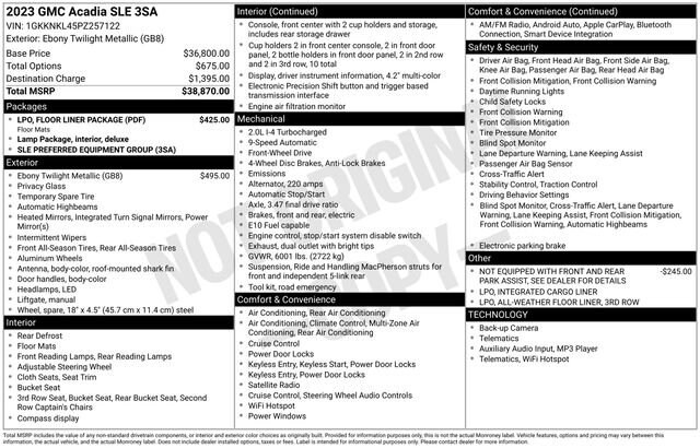 Certified.Certification Program Details: Include a standard 12-month, 12,000-mile (whichever comes first) limited bumper-to-bumper warranty. - If the vehicle has remaining new vehicle bumper-to-bumper limited warranty coverage, the CarBravo warranty coverage applies after expiration of the original new vehicle limited bumper-to-bumper warranty - If the vehicleâs original new vehicle limited bumper-to-bumper warranty has expired due to time or mileage, the CarBravo warranty coverage becomes effective on the day of the sale of the CarBravo vehiclePriced below KBB Fair Purchase Price!Welcome to Shea Automotive! We have 800+ used cars in ONE LOCATION! Stop in at 2100 S Linden Rd. Flint, MI 48532 or call 810-732-7500 to schedule a test drive!1st & 2nd Row All-Weather Floor Liner (LPO), 3.47 Final Drive Axle Ratio, 3rd Row All-Weather Floor Liner (LPO), 3rd row seats: split-bench, 4-Way Manual Driver Seat Adjuster, 4-Way Manual Passenger Seat Adjuster, 4-Wheel Disc Brakes, 6 Speakers, 6-Passenger (2-2-2 Seating Configuration), 6-Speaker Audio System Feature, ABS brakes, Air Conditioning, Alloy wheels, AM/FM radio: SiriusXM, Apple CarPlay/Android Auto, Auto High-beam Headlights, Automatic temperature control, Brake assist, Bumpers: body-color, Compass, Delay-off headlights, Driver door bin, Driver vanity mirror, Dual front impact airbags, Dual front side impact airbags, Electronic Stability Control, Emergency communication system: OnStar and GMC connected services capable, Floor Liner Package (LPO), Four wheel independent suspension, Front anti-roll bar, Front Bucket Seats, Front Center Armrest, Front dual zone A/C, Front reading lights, Fully automatic headlights, Heated door mirrors, Illuminated entry, Integrated Cargo Liner (LPO), Knee airbag, Low tire pressure warning, Not Equipped w/Front & Rear Park Assist (060), Occupant sensing airbag, Outside temperature display, Overhead airbag, Overhead console, Panic alarm, Passenger door bin, Passenger vanity mirror, Power door mirrors, Power steering, Power windows, Preferred Equipment Group 3SA, Premium Cloth Seat Trim, Radio data system, Radio: AM/FM w/8 Diagonal Multi-Touch Display, Rear air conditioning, Rear anti-roll bar, Rear reading lights, Rear window defroster, Rear window wiper, Remote keyless entry, Security system, SiriusXM Radio, Speed control, Speed-sensing steering, Spoiler, Steering wheel mounted audio controls, Tachometer, Telescoping steering wheel, Tilt steering wheel, Traction control, Trip computer, Turn signal indicator mirrors, Variably intermittent wipers, Voltmeter, Wheels: 18 Machined Aluminum w/Dark Accents, Wireless Apple CarPlay/Wireless Android Auto.Clean CARFAX. SLE 2.0L Turbocharged 9-Speed Automatic FWD Ebony Twilight Metallic