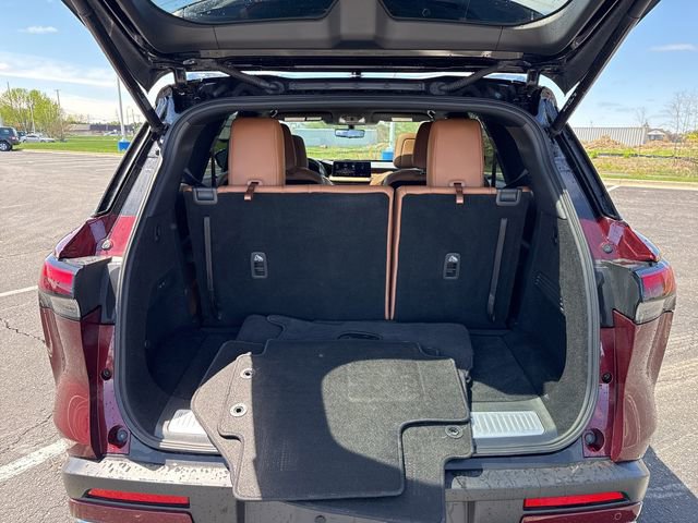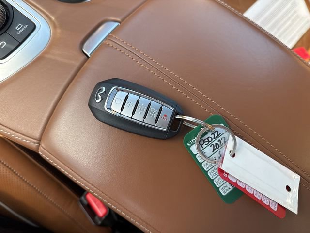 Navigation system: INFINITI InTouch Navigation, 17 Speakers, 3rd row seats: bench, 4-Wheel Disc Brakes, 4.334 Axle Ratio, ABS brakes, Air Conditioning, Alloy wheels, AM/FM radio: SiriusXM, Anti-whiplash front head restraints, Auto High-beam Headlights, Auto-dimming door mirrors, Auto-dimming Rear-View mirror, Automatic temperature control, Bose Performance Series 17-Speaker Sound System, Brake assist, Bumpers: body-color, Delay-off headlights, Driver door bin, Driver vanity mirror, Dual front impact airbags, Dual front side impact airbags, Electronic Stability Control, Emergency communication system, Four wheel independent suspension, Front anti-roll bar, Front Bucket Seats, Front Center Armrest, Front dual zone A/C, Front reading lights, Fully automatic headlights, Garage door transmitter: HomeLink, Heads-Up Display, Heated & Cooled Front Bucket Seats, Heated door mirrors, Heated front seats, Heated rear seats, Heated steering wheel, Illuminated entry, Knee airbag, Leather Shift Knob, Leather steering wheel, Low tire pressure warning, Memory seat, Occupant sensing airbag, Outside temperature display, Overhead airbag, Overhead console, Panic alarm, Passenger door bin, Passenger vanity mirror, Power door mirrors, Power driver seat, Power Liftgate, Power moonroof, Power passenger seat, Power steering, Power windows, Radio data system, Radio: AM/FM Audio System, Rain sensing wipers, Rear air conditioning, Rear anti-roll bar, Rear reading lights, Rear side impact airbag, Rear window defroster, Rear window wiper, Reclining 3rd row seat, Remote keyless entry, Roof rack: rails only, Security system, Semi Aniline Leather Seating Surfaces, Speed control, Speed-sensing steering, Speed-Sensitive Wipers, Split folding rear seat, Spoiler, Steering wheel memory, Steering wheel mounted audio controls, Tachometer, Telescoping steering wheel, Tilt steering wheel, Traction control, Trip computer, Turn signal indicator mirrors, Variably intermittent wipers, Ventilated front seats, Wheels: 20 x 8J Luxury Machined Aluminum Alloy, Navigation system: INFINITI InTouch Navigation.