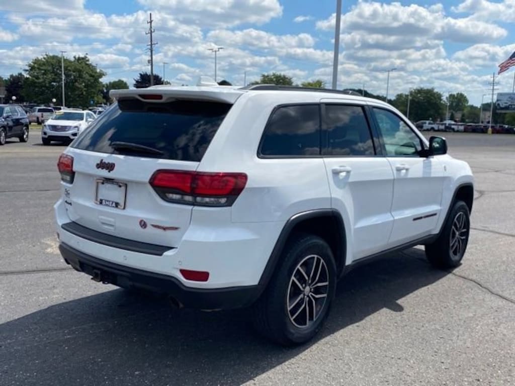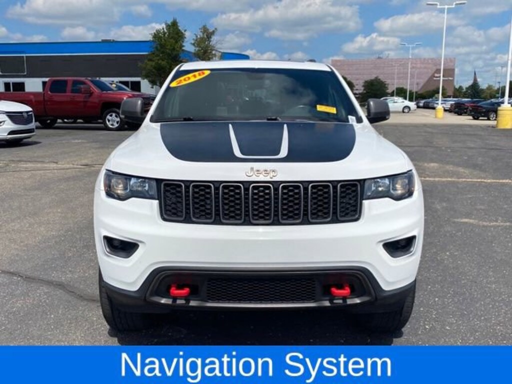 Navigation System, 10 Speakers, 230MM Rear Axle, 3.09 Rear Axle Ratio, 3.45 Rear Axle Ratio, 4-Wheel Disc Brakes, ABS brakes, Air Conditioning, Alloy wheels, AM/FM radio: SiriusXM, Anti-whiplash front head restraints, Apple CarPlay/Android Auto, Audio memory, Auto-dimming door mirrors, Auto-Dimming Exterior Passenger Mirror, Auto-dimming Rear-View mirror, Auto-leveling suspension, Automatic temperature control, Blind Spot & Cross Path Detection, Brake assist, Bumpers: body-color, Compass, Delay-off headlights, Driver door bin, Driver vanity mirror, Dual Bright Exhaust Tips, Dual front impact airbags, Dual front side impact airbags, Electronic Stability Control, Emergency communication system: SiriusXM Guardian, Engine Oil Cooler, Four wheel independent suspension, Front anti-roll bar, Front Bucket Seats, Front Center Armrest w/Storage, Front dual zone A/C, Front fog lights, Front License Plate Bracket, Front reading lights, Fully automatic headlights, Garage door transmitter, Gloss Black Roof Rails (DISC), Heated door mirrors, Heated front seats, Heated rear seats, Heated steering wheel, Heavy-Duty Engine Cooling, Illuminated entry, Knee airbag, Leather Shift Knob, Low tire pressure warning, Manufacturer's Statement of Origin, Memory seat, Normal Duty Suspension - Increased Travel, Occupant sensing airbag, Outside temperature display, Overhead airbag, Overhead console, Panic alarm, ParkView Rear Back-Up Camera, Passenger door bin, Passenger vanity mirror, Power door mirrors, Power driver seat, Power Liftgate, Power passenger seat, Power steering, Power Sunroof (DISC), Power windows, Quadra-Trac II 4WD System, Quick Order Package 22J, Radio data system, Radio: Uconnect 4C Nav w/8.4 Display, Rear anti-roll bar, Rear reading lights, Rear seat center armrest, Rear window defroster, Rear window wiper, Remote keyless entry, Roof rack: rails only, Security system, Speed control, Speed-Sensitive Wipers, Split folding rear seat, Spoiler, Steering wheel mounted audio controls, Tachometer, Telescoping steering wheel, Tilt steering wheel, Traction control, Trailhawk Leather/Suede Seats, Trip computer, Turn signal indicator mirrors, Variably intermittent wipers, Ventilated front seats, Wheels: 18 x 8.0 Off Road Aluminum, Navigation System.