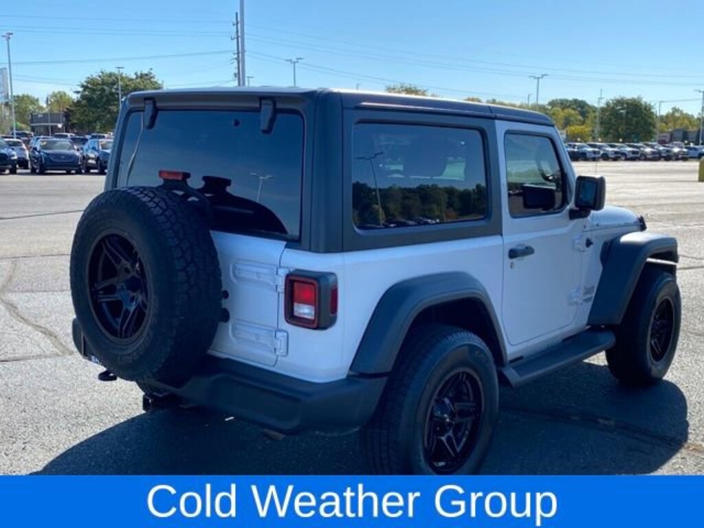 Cold Weather Group, Convenience Group, Heated Front Seats, Heated Steering Wheel, Universal Garage Door Opener, 110 mph Vehicle Max Speed Calibration, 3.45 Rear Axle Ratio, 4-Wheel Disc Brakes, 8 Speakers, ABS brakes, Air Conditioning, AM/FM radio, Automatic Headlamps, Aux Battery, Black 3-Piece Hard Top, Brake assist, Cloth Low-Back Bucket Seats, Compass, Deep Tint Sunscreen Windows, Delay-off headlights, Driver door bin, Driver vanity mirror, Dual front impact airbags, Dual front side impact airbags, Electronic Stability Control, Freedom Panel Storage Bag, Front 1-Touch Down Power Windows, Front anti-roll bar, Front Bucket Seats, Front Center Armrest w/Storage, Front fog lights, Front reading lights, Integrated roll-over protection, Leather Wrapped Steering Wheel, Low tire pressure warning, Manuf Statement of Origin, MOPAR All-Weather Floor Mats (DISC), MOPAR Hardtop Headliner, No Soft Top, Non-Lock Fuel Cap w/o Discriminator, Normal Duty Suspension, Occupant sensing airbag, Outside temperature display, ParkView Rear Back-Up Camera, Passenger door bin, Passenger vanity mirror, Power Heated Mirrors, Power steering, Quick Order Package 22S Sport S, R1234YF A/C Refrigerant, Radio data system, Radio: Uconnect 3 w/5 Display, Rear anti-roll bar, Rear reading lights, Rear Window Defroster, Rear Window Wiper/Washer, Remote Keyless Entry, Security Alarm, Speed control, Speed Sensitive Power Locks, Steering wheel mounted audio controls, Stop-Start Dual Battery System, Sun Visors w/Illuminated Vanity Mirrors, Tachometer, Telescoping steering wheel, Tilt steering wheel, Traction control, Trip computer, Variably intermittent wipers, Wheels: 17 x 7.5 Black Steel Styled, Wheels: 17 x 7.5 Tech Silver Aluminum, Cold Weather Group, Convenience Group, Heated Front Seats, Heated Steering Wheel, Universal Garage Door Opener.