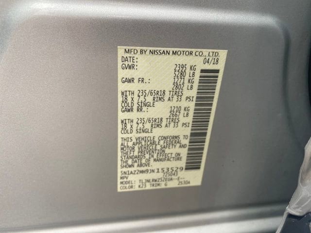 Navigation System, 11 Speakers, 4-Wheel Disc Brakes, 4.667 Axle Ratio, ABS brakes, Air Conditioning, Alloy wheels, AM/FM radio: SiriusXM, AM/FM/CD/MP3/WMA Audio System, Apple CarPlay/Android Auto, Auto-dimming Rear-View mirror, Automatic temperature control, Blind Spot Warning, Brake assist, Bumpers: body-color, Carpeted Floor Mats & Carpeted Cargo Mat, CD player, Child-Seat-Sensing Airbag, Compass, Delay-off headlights, Driver door bin, Driver vanity mirror, Dual front impact airbags, Dual front side impact airbags, Electronic Stability Control, Four wheel independent suspension, Front anti-roll bar, Front Bucket Seats, Front Center Armrest, Front dual zone A/C, Front fog lights, Front reading lights, Fully automatic headlights, Garage door transmitter: HomeLink, Heated door mirrors, Heated Front Bucket Seats, Heated front seats, Heated rear seats, Heated steering wheel, Illuminated entry, Knee airbag, Leather Appointed Seat Trim, Leather Shift Knob, Low tire pressure warning, Memory seat, Moonroof Package, Occupant sensing airbag, Outside temperature display, Overhead airbag, Overhead console, Panic alarm, Passenger door bin, Passenger vanity mirror, Power door mirrors, Power driver seat, Power Liftgate, Power Panoramic Moonroof, Power passenger seat, Power steering, Power windows, Radio data system, Rear anti-roll bar, Rear reading lights, Rear seat center armrest, Rear window defroster, Rear window wiper, Remote keyless entry, Roof rack: rails only, Security system, Speed control, Speed-sensing steering, Speed-Sensitive Wipers, Splash Guards, Split folding rear seat, Spoiler, Steering wheel mounted audio controls, Tachometer, Telescoping steering wheel, Tilt steering wheel, Traction control, Trip computer, Turn signal indicator mirrors, Variably intermittent wipers, Wheels: 18 Machined Aluminum-Alloy, Navigation System.