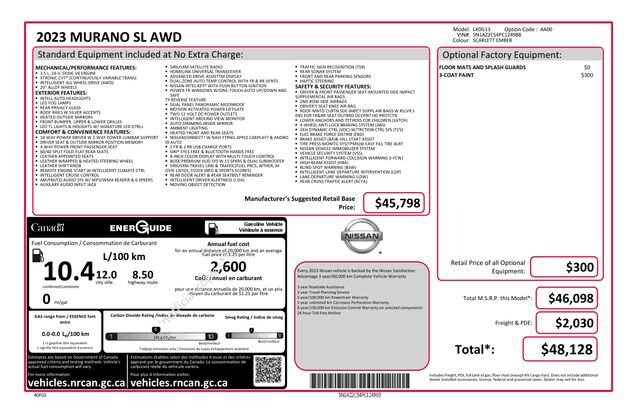 This 2023 Nissan Murano SL is equipped with an impressive array of features that will elevate your driving experience. Key highlights include: