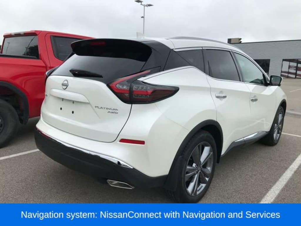Navigation system: NissanConnect with Navigation and Services, 11 Speakers, 4-Wheel Disc Brakes, 4.667 Axle Ratio, ABS brakes, Air Conditioning, Alloy wheels, AM/FM radio: SiriusXM, AM/FM/CD/MP3/WMA Audio System, Auto High-beam Headlights, Auto tilt-away steering wheel, Auto-dimming Rear-View mirror, Automatic temperature control, Blind Spot Warning, Brake assist, Bumpers: body-color, CD player, Child-Seat-Sensing Airbag, Compass, Delay-off headlights, Driver door bin, Driver vanity mirror, Dual front impact airbags, Dual front side impact airbags, Electronic Stability Control, Emergency communication system: NissanConnect Services (first 6 months included), Exterior Parking Camera Rear, Four wheel independent suspension, Front anti-roll bar, Front Bucket Seats, Front Center Armrest, Front dual zone A/C, Front fog lights, Front reading lights, Fully automatic headlights, Garage door transmitter: HomeLink, Heated & Ventilated Front Bucket Seats, Heated door mirrors, Heated front seats, Heated rear seats, Heated steering wheel, Illuminated entry, Knee airbag, Leather steering wheel, Low tire pressure warning, Memory seat, NissanConnect featuring Apple CarPlay and Android Auto, NissanConnect Services Powered By SiriusXM, Occupant sensing airbag, Outside temperature display, Overhead airbag, Overhead console, Panic alarm, Passenger door bin, Passenger vanity mirror, Power door mirrors, Power driver seat, Power Liftgate, Power moonroof, Power passenger seat, Power steering, Power windows, Radio data system, Rear anti-roll bar, Rear reading lights, Rear seat center armrest, Rear side impact airbag, Rear window defroster, Rear window wiper, Remote keyless entry, Security system, Semi-Aniline Leather-Appointed Seat Trim, Speed control, Speed-sensing steering, Speed-Sensitive Wipers, Split folding rear seat, Spoiler, Steering wheel memory, Steering wheel mounted audio controls, Tachometer, Telescoping steering wheel, Tilt steering wheel, Traction control, Trip computer, Turn signal indicator mirrors, Variably intermittent wipers, Ventilated front seats, Wheels: 20 Unique Dark Hyper Silver, Navigation system: NissanConnect with Navigation and Services.