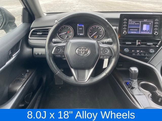 Stepping inside, you'll be greeted by a host of premium features that cater to your comfort and convenience. Enjoy the convenience of dual-zone automatic climate control, the versatility of a power driver's seat, and the connectivity of Apple CarPlay and Android Auto integration. The sport-inspired SofTex seat trim with fabric inserts adds a touch of refined style, while the 8.0J x 18 alloy wheels enhance the Camry's dynamic presence on the road.