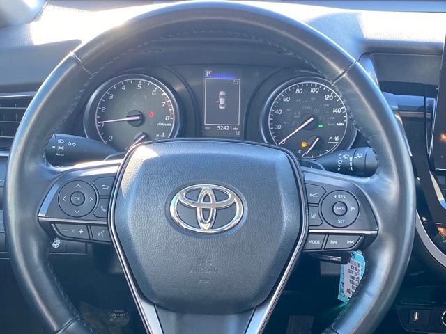 This Camry SE also boasts a host of additional amenities, such as dual-zone climate control, a power driver's seat, and steering wheel-mounted audio controls, ensuring a comfortable and convenient driving experience.