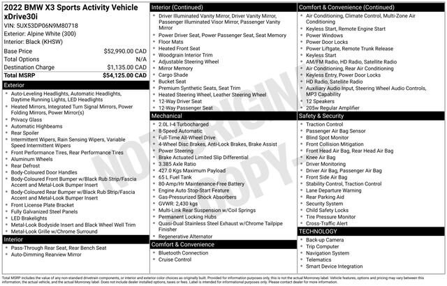 This 2022 BMW X3 xDrive30i is packed with premium features that will elevate your driving experience. Key highlights include: