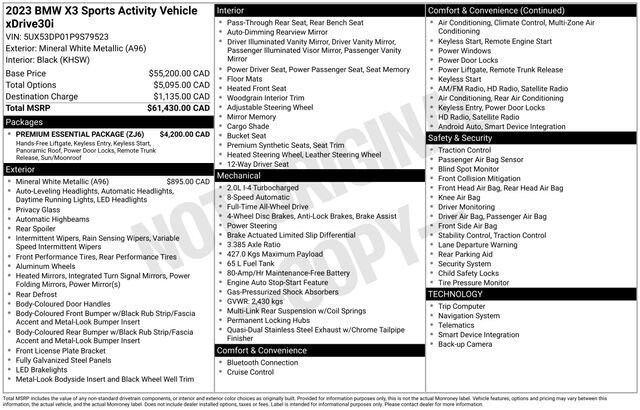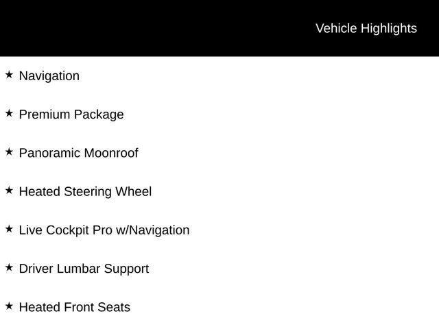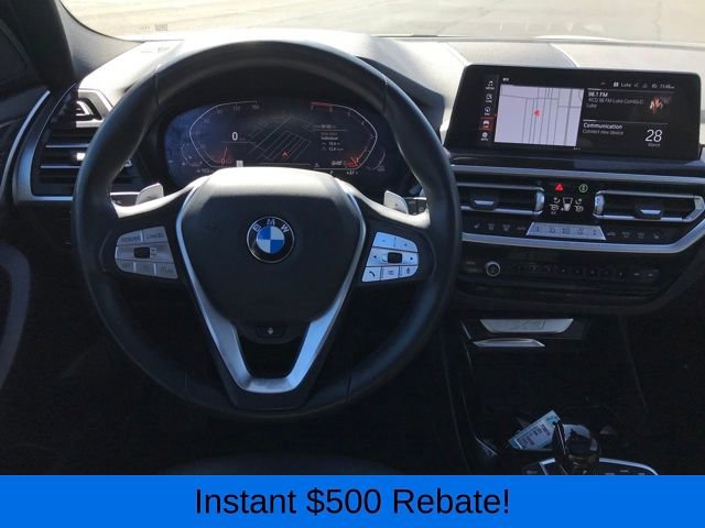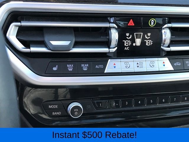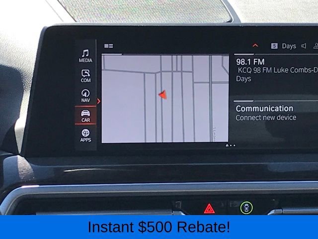 Driver Lumbar Support, Heated Front Seats, Heated Steering Wheel, Live Cockpit Pro w/Navigation, Navigation, Panoramic Moonroof, Premium Package, 12 Speakers, 3.385 Axle Ratio, 4-Wheel Disc Brakes, ABS brakes, Air Conditioning, Alloy wheels, AM/FM Radio, AM/FM radio: SiriusXM, Apple CarPlay & Android Auto Compatibility, Auto High-beam Headlights, Auto-dimming door mirrors, Auto-dimming Rear-View mirror, Automatic temperature control, BMW Assist eCall, BMW TeleServices, Brake assist, Bumpers: body-color, Connected Package Pro, ConnectedDrive Services, Delay-off headlights, Driver door bin, Driver vanity mirror, Dual front impact airbags, Dual front side impact airbags, Electronic Stability Control, Emergency communication system: BMW Assist eCall, Enhanced USB & Bluetooth w/Smartphone Integration, Exterior Parking Camera Rear, Four wheel independent suspension, Front anti-roll bar, Front Bucket Seats, Front Center Armrest, Front dual zone A/C, Front reading lights, Fully automatic headlights, Garage door transmitter, Genuine wood dashboard insert, Genuine wood door panel insert, Heated door mirrors, Hi-Fi Sound System, Illuminated entry, Knee airbag, Low tire pressure warning, Memory seat, Navigation System, Occupant sensing airbag, Outside temperature display, Overhead airbag, Panic alarm, Passenger door bin, Passenger vanity mirror, Perforated SensaTec Upholstery, Power door mirrors, Power driver seat, Power Front Seats, Power Liftgate, Power passenger seat, Power steering, Power windows, Radio data system, Rain sensing wipers, Rear air conditioning, Rear anti-roll bar, Rear reading lights, Rear seat center armrest, Rear window defroster, Rear window wiper, Remote keyless entry, Security system, SiriusXM Satellite Radio, Speed control, Speed-sensing steering, Speed-Sensitive Wipers, Split folding rear seat, Spoiler, Sport Seats, Sport steering wheel, Steering wheel mounted audio controls, Tachometer, Telescoping steering wheel, Tilt steering wheel, Traction control, Trip computer, Turn signal indicator mirrors, Variably intermittent wipers, Wheels: 19 x 7.5 Y-Spoke (Style 693), WiFi Hotspot, Driver Lumbar Support, Heated Front Seats, Heated Steering Wheel, Live Cockpit Pro w/Navigation, Navigation, Panoramic Moonroof, Premium Package.