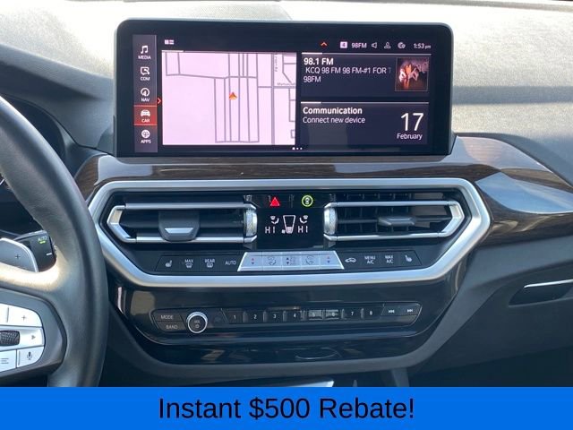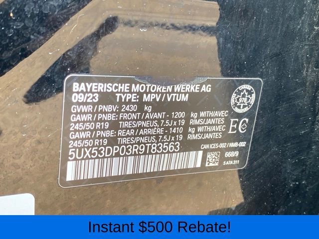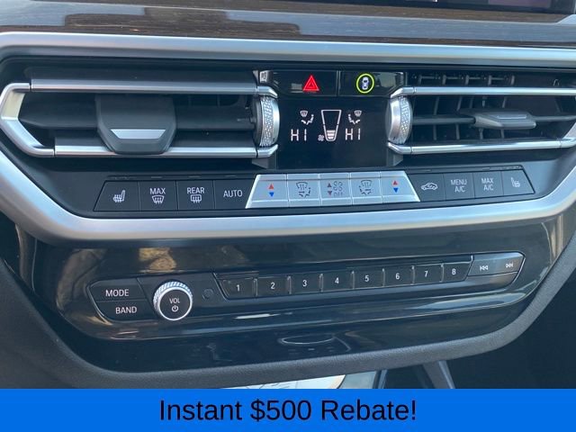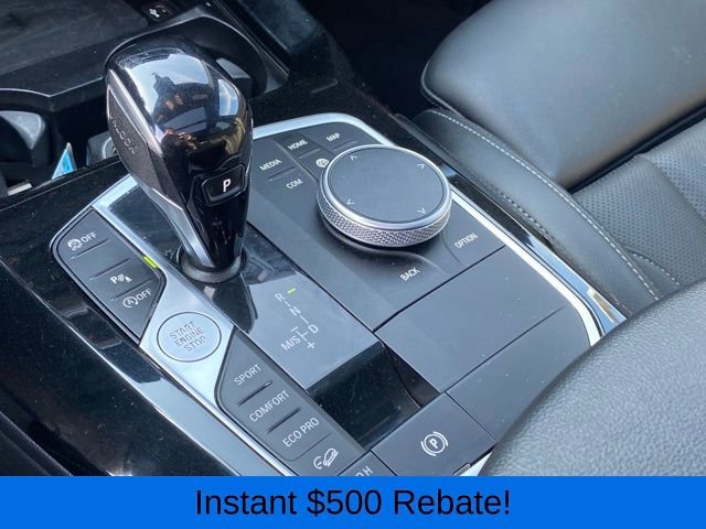 Head-Up Display, Heated Front Seats, Heated Steering Wheel, Live Cockpit Pro w/Navigation, Lumbar Support, Navigation System, Panoramic Moonroof, Premium Package, 12 Speakers, 3.385 Axle Ratio, 4-Wheel Disc Brakes, ABS brakes, Air Conditioning, Alloy wheels, AM/FM Radio, AM/FM radio: SiriusXM, Apple CarPlay & Android Auto Compatibility, Auto High-beam Headlights, Auto-dimming door mirrors, Auto-dimming Rear-View mirror, Automatic temperature control, BMW Assist eCall, BMW TeleServices, Brake assist, Bumpers: body-color, Connected Package Pro, ConnectedDrive Services, Delay-off headlights, Driver door bin, Driver vanity mirror, Dual front impact airbags, Dual front side impact airbags, Electronic Stability Control, Emergency communication system: BMW Assist eCall, Enhanced USB & Bluetooth w/Smartphone Integration, Exterior Parking Camera Rear, Four wheel independent suspension, Front anti-roll bar, Front Bucket Seats, Front Center Armrest, Front dual zone A/C, Front reading lights, Fully automatic headlights, Garage door transmitter, Genuine wood dashboard insert, Genuine wood door panel insert, Heated door mirrors, Hi-Fi Sound System, Illuminated entry, Knee airbag, Leather steering wheel, Low tire pressure warning, Memory seat, Navigation, Occupant sensing airbag, Outside temperature display, Overhead airbag, Panic alarm, Passenger door bin, Passenger vanity mirror, Perforated SensaTec Upholstery, Power door mirrors, Power driver seat, Power Front Seats, Power Liftgate, Power passenger seat, Power steering, Power windows, Radio data system, Rain sensing wipers, Rear air conditioning, Rear anti-roll bar, Rear reading lights, Rear seat center armrest, Rear window defroster, Rear window wiper, Remote keyless entry, Security system, SiriusXM w/360L & 1 Yr Platinum Plan Subscription, Speed control, Speed-sensing steering, Speed-Sensitive Wipers, Split folding rear seat, Spoiler, Sport Seats, Sport steering wheel, Steering wheel mounted audio controls, Tachometer, Telescoping steering wheel, Tilt steering wheel, Traction control, Trip computer, Turn signal indicator mirrors, Variably intermittent wipers, Wheels: 19 x 7.5 Y-Spoke (Style 693), WiFi Hotspot, Head-Up Display, Heated Front Seats, Heated Steering Wheel, Live Cockpit Pro w/Navigation, Lumbar Support, Navigation System, Panoramic Moonroof, Premium Package.