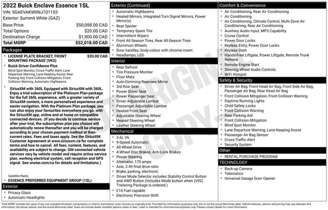 This Enclave Essence is a certified pre-owned vehicle, meaning it has been thoroughly inspected and reconditioned to meet Buick's high standards. You can drive with confidence knowing that this SUV has been meticulously maintained and is backed by a comprehensive warranty.