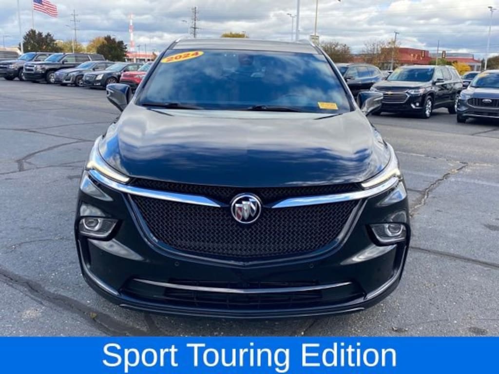 5,000 lbs Trailering Package, Heavy-Duty Cooling System, Hitch Guidance, Hitch Guidance w/Hitch View, Sport Touring Edition, Sport Touring Liftgate Badging, Unique Sport Grille w/Body-Color Surround, Wheels: 20 Gloss Black, 18 Aluminum Wheels, 1st & 2nd Row All-Weather Floor Liners (LPO), 3.49 Final Drive Axle Ratio, 3rd Row All-Weather Floor Liner (LPO), 3rd row seats: split-bench, 4-Wheel Disc Brakes, 6 Speakers, 6-Speaker Audio System Feature, 6-Way Power Front Passenger Seat Adjuster, 7-Passenger Seating, 8-Way Power Driver Seat Adjuster, ABS brakes, Air Conditioning, Alloy wheels, AM/FM radio: SiriusXM with 360L, Auto High-beam Headlights, Auto-dimming door mirrors, Auto-dimming Rear-View mirror, Automatic temperature control, Brake assist, Bumpers: body-color, Compass, Delay-off headlights, Driver door bin, Driver vanity mirror, Dual front impact airbags, Dual front side impact airbags, Electronic Stability Control, Emergency communication system: OnStar and Buick connected services capable, Floor Liner Package (LPO), Four wheel independent suspension, Front anti-roll bar, Front Bucket Seats, Front Center Armrest, Front dual zone A/C, Front reading lights, Fully automatic headlights, Garage door transmitter, Heated door mirrors, Heated Driver & Front Passenger Seats, Heated front seats, Heated steering wheel, Illuminated entry, Integrated Cargo Liner (LPO), Leather steering wheel, Low tire pressure warning, Occupant sensing airbag, Outside temperature display, Overhead airbag, Overhead console, Panic alarm, Passenger door bin, Passenger vanity mirror, Perforated Leather-Appointed Seat Trim, Power door mirrors, Power Driver Lumbar Control Seat Adjuster, Power driver seat, Power Liftgate, Power Passenger Lumbar Control Seat Adjuster, Power passenger seat, Power steering, Power windows, Preferred Equipment Group 1SL, Premium audio system: Buick Infotainment System, Radio data system, Radio: Buick Infotainment System AM/FM Stereo, Rear air conditioning, Rear anti-roll bar, Rear reading lights, Rear window defroster, Rear window wiper, Remote keyless entry, Roof rack: rails only, Security system, SiriusXM w/360L, Speed control, Speed-sensing steering, Spoiler, Steering wheel mounted audio controls, Tachometer, Telescoping steering wheel, Tilt steering wheel, Traction control, Trip computer, Turn signal indicator mirrors, Variably intermittent wipers, Vehicle Health Management, Voltmeter, Wireless Apple CarPlay/Wireless Android Auto, 5,000 lbs Trailering Package, Heavy-Duty Cooling System, Hitch Guidance, Hitch Guidance w/Hitch View, Sport Touring Edition, Sport Touring Liftgate Badging, Unique Sport Grille w/Body-Color Surround, Wheels: 20 Gloss Black.