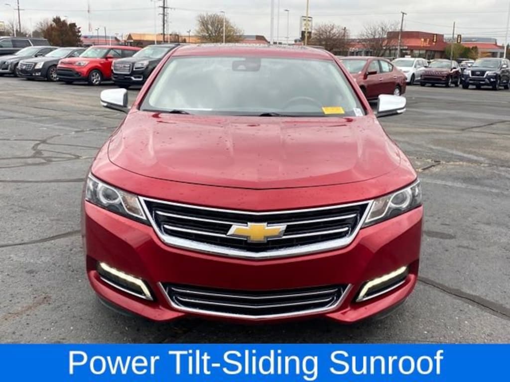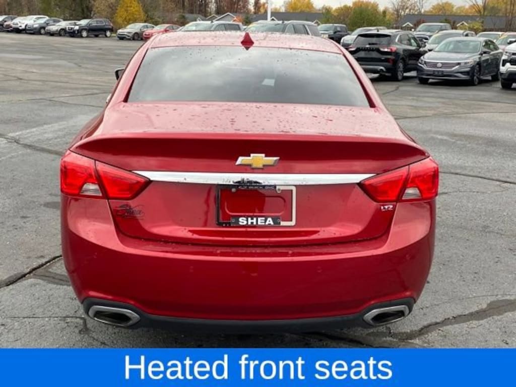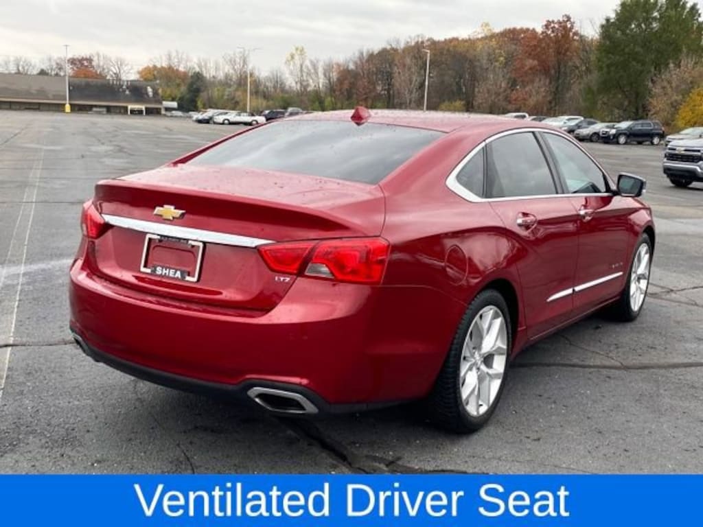 Impala LTZ 2LZ, Black Leather, Heated front seats, Power Tilt-Sliding Sunroof, Ventilated Driver Seat, 100-Watt 6-Speaker System, 3 USB Ports, 4-Wheel Disc Brakes, 6 Speakers, 8-Way Power Driver Seat Adjuster, 8-Way Power Front Passenger Seat Adjuster, 8 Diagonal Color Infotainment Display, ABS brakes, Air Conditioning, Alloy wheels, AM/FM radio: SiriusXM, Auto-Dimming Inside Rear-View Mirror, Automatic temperature control, Bodyside moldings, Brake assist, Bumpers: body-color, Carpeted Trunk Mat, CD player, Comfort & Convenience Package, Compass, Delay-off headlights, Driver 4-Way Power Lumbar Seat Adjuster, Driver door bin, Driver Memory, Driver vanity mirror, Dual front impact airbags, Dual front side impact airbags, Electronic Stability Control, Emergency communication system: OnStar Directions & Connections, Exterior Parking Camera Rear, Four wheel independent suspension, Front anti-roll bar, Front Bucket Seats, Front Center Armrest, Front dual zone A/C, Front Passenger 4-Way Power Lumbar Seat Adjuster, Front reading lights, Fully automatic headlights, Heated door mirrors, Heated Steering Wheel, High-Intensity Discharge Headlights, Illuminated entry, Knee airbag, Leather Shift Knob, Leather-Appointed Seat Trim, Low tire pressure warning, Occupant sensing airbag, Outside Heated Power-Adjustable Mirrors, Overhead airbag, Overhead console, Panic alarm, Passenger door bin, Passenger vanity mirror, Power door mirrors, Power driver seat, Power moonroof, Power passenger seat, Power steering, Power Tilt & Telescoping Steering Column, Power windows, Preferred Equipment Group 2LZ, Premium audio system: Chevrolet MyLink, Premium Carpeted Front & Rear Floor Mats, Radio data system, Radio: Chevrolet MyLink AM/FM Stereo w/CD Player, Rear anti-roll bar, Rear reading lights, Rear seat center armrest, Rear side impact airbag, Rear window defroster, Remote keyless entry, SD Card Receptacle, Security system, SiriusXM & HD Radio, Speed control, Speed-sensing steering, Split folding rear seat, Steering wheel mounted audio controls, Tachometer, Telescoping steering wheel, Tilt steering wheel, Traction control, Trip computer, Turn signal indicator mirrors, Universal Home Remote, Variably intermittent wipers, Ventilated Front Passenger Seat, Wheels: 19 Machined-Face Aluminum, Impala LTZ 2LZ, Black Leather, Heated front seats, Power Tilt-Sliding Sunroof, Ventilated Driver Seat.