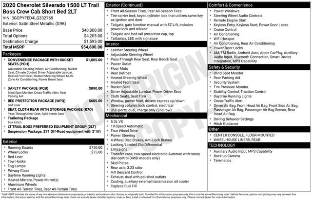 Certified.Certification Program Details: Include a standard 12-month, 12,000-mile (whichever comes first) limited bumper-to-bumper warranty. - If the vehicle has remaining new vehicle bumper-to-bumper limited warranty coverage, the CarBravo warranty coverage applies after expiration of the original new vehicle limited bumper-to-bumper warranty - If the vehicleâs original new vehicle limited bumper-to-bumper warranty has expired due to time or mileage, the CarBravo warranty coverage becomes effective on the day of the sale of the CarBravo vehicleWelcome to Shea Automotive! We have 800+ used cars in ONE LOCATION! Stop in at 2100 S Linden Rd. Flint, MI 48532 or call 810-732-7500 to schedule a test drive!10-Way Power Driver Seat w/Lumbar, Bed Protection Package, Chevytec Spray-On Black Bedliner, Convenience Package w/Buckets Seats, Dual-Zone Automatic Climate Control, Floor Mounted Center Console, Front Bucket Seats, Heated Driver & Front Outboard Passenger Seats, Heated Steering Wheel, Lane Change Alert w/Side Blind Zone Alert, Manual Tilt/Telescoping Steering Column, Perimeter Lighting, Rear Cross Traffic Alert, Rear Wheelhouse Liners, Safety Package, Ultrasonic Front & Rear Park Assist, 12-Volt Rear Auxiliary Power Outlet, 170 Amps Alternator, 2 USB Ports (First Row), 3.23 Rear Axle Ratio, 4-Way Manual Driver Seat Adjuster, 4-Wheel Disc Brakes, 4.2 Diagonal Color Display Driver Info Center, 4 Black Round Assist Steps (LPO), 40/20/40 Front Split-Bench Seat, 4G LTE Wi-Fi Hot Spot Capable, 6 Speakers, 6-Speaker Audio System, ABS brakes, Air Conditioning, All-Weather Floor Liner (LPO) (AAK), Alloy wheels, AM/FM radio: SiriusXM, Apple CarPlay/Android Auto, Auxiliary External Transmission Oil Cooler, Bluetooth® For Phone, Brake assist, Chevrolet Connected Access Capable, Cloth Rear Seat w/Storage Package, Cloth Seat Trim, Color-Keyed Carpeting Floor Covering, Compass, Deep-Tinted Glass, Delay-off headlights, Driver door bin, Driver vanity mirror, Dual Exhaust w/Polished Outlets, Dual front impact airbags, Dual front side impact airbags, Electric Rear-Window Defogger, Electrical Lock Control Steering Column, Electronic Stability Control, Front anti-roll bar, Front Center Armrest w/Storage, Front fog lights, Front LED Fog Lamps, Front reading lights, Front wheel independent suspension, Fully automatic headlights, Heated door mirrors, Heavy-Duty Rear Locking Differential, High Capacity Air Filter, High Gloss Black Grille, High Gloss Black Mirror Caps, Hill Descent Control, Hitch Guidance, Illuminated entry, Keyless Open & Start, Leather Wrapped Steering Wheel, LED Cargo Area Lighting, LED Reflector Headlamps, Low tire pressure warning, Manual Tilt-Wheel Steering Column, Occupant sensing airbag, Off-Road Suspension w/2 Lift, OnStar & Chevrolet Connected Services Capable, Outside temperature display, Overhead airbag, Overhead console, Panic alarm, Passenger door bin, Passenger vanity mirror, Performance Red Recovery Hooks, Power Door Locks, Power door mirrors, Power Front Windows w/Driver Express Up/Down, Power Front Windows w/Passenger Express Down, Power Rear Windows w/Express Down, Power steering, Power windows, Preferred Equipment Group 2LT, Radio data system, Radio: Chevrolet Infotainment 3 System, Rear 60/40 Folding Bench Seat (Folds Up), Rear Dual USB Charging-Only Ports, Rear reading lights, Rear step bumper, Rear Vision Camera, Rear window defroster, Remote keyless entry, Remote Vehicle Starter System, Security system, Single-Zone Manual/Semi-Automatic Air Conditioning, Speed control, Speed-sensing steering, Split folding rear seat, Steering Wheel Audio Controls, Steering wheel mounted audio controls, Steering Wheel Mounted Electronic Cruise Control, Suspension Package, Tachometer, Theft Deterrent System (Unauthorized Entry), Tilt steering wheel, Traction control, Trailering Package, Trip computer, Variably intermittent wipers, Voltmeter, Wheel Locks (Set of 4) (LPO), Wheels: 18 x 8.5 Black Painted