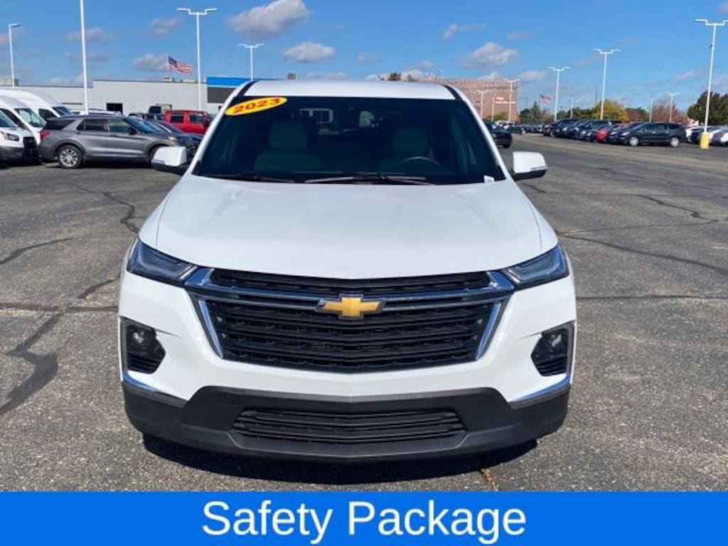 Lane Change Alert w/Side Blind Zone Alert, Rear Cross Traffic Alert, Rear Park Assist w/Audible Warning, Safety Package, 1st & 2nd Row All-Weather Floor Liner (LPO), 2-Way Manual Front Passenger Seat Adjuster, 3.49 Axle Ratio, 3rd Row All-Weather Floor Liner (LPO), 3rd row seats: split-bench, 4-Wheel Disc Brakes, 6 Speakers, 6-Speaker Audio System Feature, 6-Way Manual Driver Seat Adjuster, ABS brakes, Air Conditioning, Alloy wheels, AM/FM radio: SiriusXM, Apple CarPlay/Android Auto, Auto High-beam Headlights, Automatic temperature control, Brake assist, Bumpers: body-color, Compass, Delay-off headlights, Driver door bin, Driver vanity mirror, Dual front impact airbags, Dual front side impact airbags, Electronic Stability Control, Emergency communication system, Exterior Parking Camera Rear, Floor Liner Package (LPO), Four wheel independent suspension, Front anti-roll bar, Front Bucket Seats, Front Center Armrest, Front dual zone A/C, Front reading lights, Fully automatic headlights, Heated door mirrors, Illuminated entry, Integrated Cargo Liner (LPO), Low tire pressure warning, Not Equipped w/Rear Park Assist (060), Occupant sensing airbag, Outside Heated Power-Adjustable Mirrors, Outside temperature display, Overhead airbag, Overhead console, Panic alarm, Passenger door bin, Passenger vanity mirror, Power door mirrors, Power steering, Power windows, Preferred Equipment Group 1LS, Premium Cloth Seat Trim, Radio data system, Radio: Chevrolet Infotainment System AM/FM Stereo, Rear air conditioning, Rear anti-roll bar, Rear reading lights, Rear window defroster, Rear window wiper, Remote keyless entry, Security system, SiriusXM Radio, Speed control, Speed-sensing steering, Split folding rear seat, Spoiler, Steering wheel mounted audio controls, Tachometer, Telescoping steering wheel, Tilt steering wheel, Traction control, Trip computer, Variably intermittent wipers, Voltmeter, Wheels: 18 Bright Silver Painted Aluminum, Lane Change Alert w/Side Blind Zone Alert, Rear Cross Traffic Alert, Rear Park Assist w/Audible Warning, Safety Package.