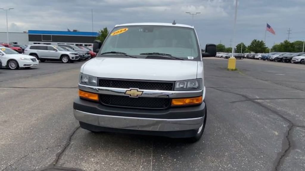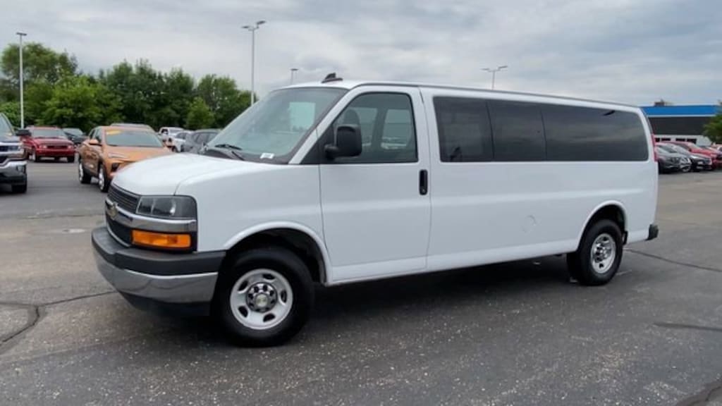 12-Passenger Seating (2-3-3-4 Seating Config), 15-Passenger Seating (2-3-3-3-4 Seating Config), 16 x 6.5 Steel Wheels, 2 Speakers, 3.42 Rear Axle Ratio, 3rd row seats: bench, 4-Wheel Disc Brakes, 4th-Row Bench Seat, ABS brakes, Air Conditioning, AM/FM radio, AM/FM Stereo w/MP3 Player, Bumpers: chrome, Chrome Appearance Package, Chrome Grille, Compass, Custom Cloth Seat Trim, Delay-off headlights, Deluxe Console w/Swing Out Storage Bin, Driver door bin, Driver vanity mirror, Driver's Seat Mounted Armrest, Dual front impact airbags, Dual front side impact airbags, Electronic Stability Control, Emergency communication system: OnStar and Chevrolet connected services capable, Forward Collision Alert, Front & Rear Chrome Bumpers w/Step-Pad, Front anti-roll bar, Front Bucket Seats, Front reading lights, Front wheel independent suspension, Full-Floor Color-Keyed Carpeting, Fully automatic headlights, Heated door mirrors, Illuminated entry, Keyless Entry Control Module (LPO), Lane Departure Warning System, Low tire pressure warning, Occupant sensing airbag, Overhead airbag, Panic alarm, Passenger cancellable airbag, Passenger door bin, Passenger seat mounted armrest, Passenger vanity mirror, Power door mirrors, Power steering, Power windows, Preferred Equipment Group 1LT, Rear air conditioning, Rear Park Assist, Rear reading lights, Reclining Front Bucket Seats w/Inboard Armrests, Remote Keyless Entry, Remote keyless entry, Security system, Side Blind Zone Alert, Sliding Passenger-Side Door, Speed control, Tachometer, Theft Alarm Notification, Tilt steering wheel, Traction control, Trip computer, Variably intermittent wipers, Voltmeter, Wheel Trim w/Chrome Center Caps.
