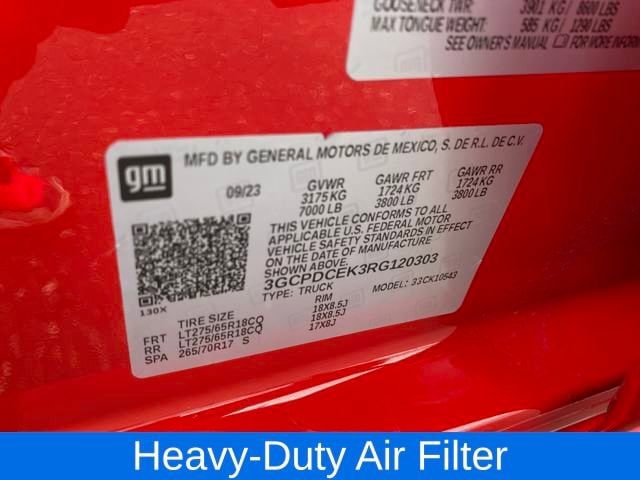 10-Way Power Driver Seat w/Lumbar, 120-Volt Interior Power Outlet, 3.5 Monochromatic Display Driver Info Center, Auto-Locking Rear Differential, Black Name Plates (LPO), Bluetooth® For Phone, Chevytec Spray-On Black Bedliner, Color-Keyed Carpeting Floor Covering, Custom Convenience Package, Dark Essentials Package (LPO), Deep-Tinted Glass, Dual Rear USB Ports (Charge Only), Electric Rear-Window Defogger, Electrical Steering Column Lock, Electronic Cruise Control, EZ Lift Power Lock & Release Tailgate, Front Rubberized Vinyl Floor Mats, HD Rear Vision Camera, Heavy-Duty Air Filter, Hill Descent Control, LED Cargo Area Lighting, Manual Tilt Wheel Steering Column, OnStar & Chevrolet Connected Services Capable, Performance Red Recovery Hooks, Power Front Windows w/Driver Express Up/Down, Power Front Windows w/Passenger Express Down, Power Rear Windows w/Express Down, Preferred Equipment Group 2CX, Rear 60/40 Folding Bench Seat (Folds Up), Rear Rubberized-Vinyl Floor Mats, Rear Wheelhouse Liners, Remote Keyless Entry, Remote Vehicle Starter System, SiriusXM Radio, Standard Tailgate, Suspension Package, Theft Deterrent System (Unauthorized Entry), Trailering Package, Wheels: 18 x 8.5 Black Painted Aluminum, 120-Volt Bed Mounted Power Outlet, 220 Amp Alternator, 3.42 Rear Axle Ratio, 4-Wheel Disc Brakes, 40/20/40 Front Split-Bench Seat, 6 Speakers, 6-Speaker Audio System, ABS brakes, Air Conditioning, Alloy wheels, AM/FM radio: SiriusXM, Auto High-beam Headlights, Automatic Emergency Braking, Black Tailgate CHEVROLET Lettering (LPO), Brake assist, Chevrolet Connected Access Capable, Cloth Seat Trim, Compass, Delay-off headlights, Driver door bin, Driver vanity mirror, Dual front impact airbags, Dual front side impact airbags, Electronic Stability Control, Following Distance Indicator, Forward Collision Alert, Front anti-roll bar, Front Center Armrest w/Storage, Front Pedestrian Braking, Front reading lights, Front wheel independent suspension, Fully automatic headlights, Heated door mirrors, Hitch Guidance, Illuminated entry, Integrated Trailer Brake Controller, IntelliBeam Automatic High Beam On/Off, Lane Keep Assist w/Lane Departure Warning, Low tire pressure warning, Occupant sensing airbag, Outside temperature display, Overhead airbag, Overhead console, Panic alarm, Passenger door bin, Passenger vanity mirror, Power door mirrors, Power driver seat, Power steering, Power windows, Premium audio system: Chevrolet Infotainment 3, Radio data system, Radio: Chevrolet Infotainment 3 System, Rear reading lights, Rear step bumper, Rear window defroster, Remote keyless entry, Security system, Single Outlet Exhaust, Speed control, Speed-sensing steering, Split folding rear seat, Tachometer, Tilt steering wheel, Traction control, Trip computer, Variably intermittent wipers, Voltmeter, Wi-Fi Hot Spot Capable, One Owner Clean Carfax, TURBOMAX ENGINE, 10-Way Power Driver Seat w/Lumbar, 120-Volt Interior Power Outlet, 3.5 Monochromatic Display Driver Info Center, Auto-Locking Rear Differential, Black Name Plates (LPO), Bluetooth® For Phone, Chevytec Spray-On Black Bedliner, Color-Keyed Carpeting Floor Covering, Custom Convenience Package, Dar
