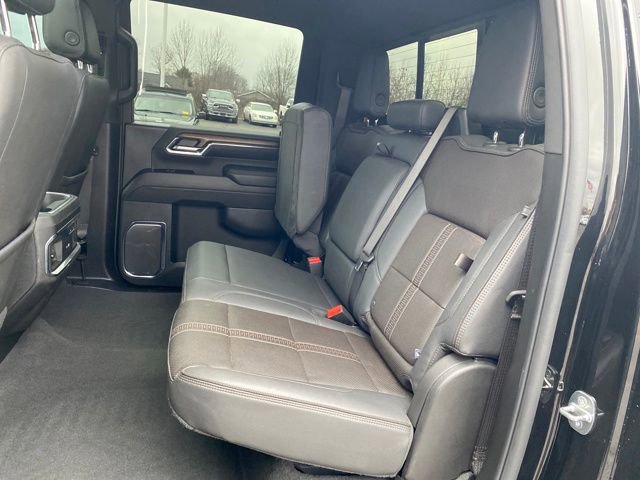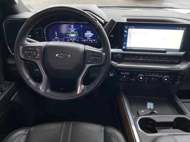 10-Way Power Driver Seat Adjuster w/Lumbar, 10-Way Power Passenger Seat Adjuster w/Lumbar, 120-Volt Bed Mounted Power Outlet, 120-Volt Interior Power Outlet, 15 Diagonal Multicolor Head-Up Display, 170 Amp Alternator, 220 Amp Alternator, 3.73 Rear Axle Ratio, 4-Wheel Disc Brakes, 6 Rectangular Chromed Tubular Assist Steps, 7 Speakers, 720 Cold-Cranking Amps Heavy-Duty Battery, ABS brakes, Adaptive Cruise Control, Air Conditioning, Alloy wheels, AM/FM radio: SiriusXM with 360L, Apple CarPlay/Android Auto, Auto High-beam Headlights, Auto-dimming door mirrors, Auto-Dimming Inside Rear-View Mirror, Auto-dimming Rear-View mirror, Automatic temperature control, Bed View Camera w/2 Trailer Camera Provisions, Black Beltline Moldings, Black Chevytec Spray-On Bedliner, Bluetooth® For Phone, Body-Color Front Bumper, Body-Color Mirror Caps, Body-Color Rear Bumper, Bodyside moldings, BOSE Premium 7-Speaker Sound System, Brake assist, Bumpers: body-color, Chevrolet Connected Access Capable, Chrome Door Handles, Chrome Mirror Caps, Color-Keyed Carpeting Floor Covering, Compass, Deep-Tinted Glass, Delay-off headlights, Driver door bin, Driver Memory, Driver vanity mirror, Dual front impact airbags, Dual front side impact airbags, Durabed Pickup Bed, Electric Rear-Window Defogger, Electronic Cruise Control w/Set & Resume Speed, Electronic Stability Control, Floor-Mounted Center Console, Front anti-roll bar, Front Bucket Seats, Front Carpeted Floor Mats, Front Center Armrest, Front Chrome Recovery Hooks, Front dual zone A/C, Front fog lights, Front LED Fog Lamps, Front Rain-Sensing Wipers, Front reading lights, Front wheel independent suspension, Fully automatic headlights, Garage door transmitter, Genuine wood console insert, Genuine wood dashboard insert, Genuine wood door panel insert, Gooseneck/5th Wheel Prep Package, Heated 2nd Row Outboard Seats, Heated door mirrors, Heated Driver & Front Outboard Passenger Seating, Heated front seats, Heated rear seats, Heated Steering Wheel, Heated steering wheel, High Gloss Black Door Handles, Hill Descent Control, Hitch Guidance w/Hitch View, Hitch Package (LPO), Illuminated entry, In-Vehicle Trailering App System, Keyless Open & Start, LED Cargo Area Lighting, LED Smoked Amber Roof Marker Lamps, Low tire pressure warning, Manual Tilt & Telescoping Steering Column, Memory seat, Midnight Edition, Occupant sensing airbag, Off-Road Suspension, OnStar & Chevrolet Connected Services Capable, Outside temperature display, Overhead airbag, Overhead console, Panic alarm, Passenger door bin, Passenger vanity mirror, Perforated Leather Seat Trim, Polished Exhaust Tip, Power Door Locks, Power door mirrors, Power driver seat, Power Front Windows w/Driver Express Up/Down, Power Front Windows w/Passenger Express Up/Down, Power passenger seat, Power Rear Windows w/Express Down, Power Sliding Rear Window w/Defogger, Power steering, Power Sunroof, Power windows, Power-Retractable Black Assist Steps, Preferred Equipment Group 3LZ, Premium audio system: Chevrolet Infotainment 3 Premium, Push Button Start, Pwr Up/Down Tailgate Function w/Pwr Lock & Release, Radio: Chevrolet Infotainment 3 Premium System, Rain sensing wipers, Rear Camera Mirror, Rear Carpeted