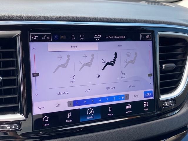 10.1 Touchscreen Display, 17 x 7.0 Aluminum Wheels, 3.25 Axle Ratio, 3rd row seats: split-bench, 4-Wheel Disc Brakes, 6 Speakers, ABS brakes, Air Conditioning, Alloy wheels, AM/FM radio: SiriusXM, Apple CarPlay, Apple CarPlay/Android Auto, Automatic temperature control, Black Seats, Brake assist, Bumpers: body-color, Caprice Leatherette Bucket Seats, Compass, Delay-off headlights, Disassociated Touchscreen Display, Driver door bin, Driver vanity mirror, Driver's Seat Mounted Armrest, Dual front impact airbags, Dual front side impact airbags, Electronic Stability Control, Four wheel independent suspension, Front anti-roll bar, Front Bucket Seats, Front dual zone A/C, Front fog lights, Front reading lights, Fully automatic headlights, Google Android Auto, GPS Antenna Input, Heated door mirrors, Heated front seats, Heated steering wheel, Illuminated entry, Integrated Active Noise Cancellation, Integrated Center Stack Radio, Knee airbag, Low tire pressure warning, Manufacturer's Statement of Origin, Memory seat, Occupant sensing airbag, Outside temperature display, Overhead airbag, Overhead console, Panic alarm, ParkView Rear Back-Up Camera, Passenger door bin, Passenger seat mounted armrest, Passenger vanity mirror, Power door mirrors, Power driver seat, Power Liftgate, Power steering, Power windows, Quick Order Package 27L, Radio data system, Radio: Uconnect 5 w/10.1 Display, Rain sensing wipers, Rear air conditioning, Rear reading lights, Rear window defroster, Rear window wiper, Reclining 3rd row seat, Remote keyless entry, Security system, Speed control, Split folding rear seat, Spoiler, Steering wheel mounted audio controls, Tachometer, Telescoping steering wheel, Tilt steering wheel, Touring Suspension, Traction control, Trip computer, Turn signal indicator mirrors, USB Host Flip, Variably intermittent wipers, Voltmeter.