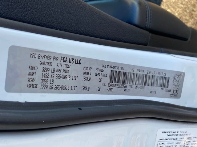 1-Year SiriusXM Radio Service, 3.45 Rear Axle Ratio, 4-Way Power Driver Lumber Adjust, 4-Wheel Disc Brakes, 6 Speakers, ABS brakes, Air Conditioning, Alloy wheels, AM/FM radio, Anti-whiplash front head restraints, Apple CarPlay/Android Auto, Auto-Dimming Rear-View Mirror, Auto-dimming Rear-View mirror, Automatic temperature control, Brake assist, Bright Side Roof Rails, Bumpers: body-color, Cloth Low-Back Bucket Seats, Comfort Seating Group, Compass, Delay-off headlights, Driver door bin, Driver vanity mirror, Dual front impact airbags, Dual front side impact airbags, Electronic Stability Control, Emergency communication system: Roadside Assistance/9-1-1 Call, For More Info, Call 800-643-2112, Four wheel independent suspension, Front anti-roll bar, Front Bucket Seats, Front Center Armrest w/Storage, Front dual zone A/C, Front fog lights, Front reading lights, Fully automatic headlights, Heated door mirrors, Illuminated entry, Integrated Roof Rail Crossbars, Knee airbag, Leather steering wheel, Low tire pressure warning, Occupant sensing airbag, Outside temperature display, Overhead airbag, Overhead console, Panic alarm, ParkSense Rear Park Assist w/Stop, ParkView Rear Back-Up Camera, Passenger door bin, Passenger vanity mirror, Power 8-Way Driver/Manual Passenger Seat, Power door mirrors, Power steering, Power windows, Quick Order Package 2BB SXT Plus, Radio: Uconnect 4 w/7 Display, Rear air conditioning, Rear anti-roll bar, Rear reading lights, Rear seat center armrest, Rear window defroster, Rear window wiper, Remote keyless entry, SiriusXM Satellite Radio, Speed control, Speed-Sensitive Wipers, Split folding rear seat, Spoiler, Steering wheel mounted audio controls, Tachometer, Telescoping steering wheel, Tilt steering wheel, Traction control, Trip computer, Variably intermittent wipers, Wheels: 18 x 8.0 Painted Aluminum.