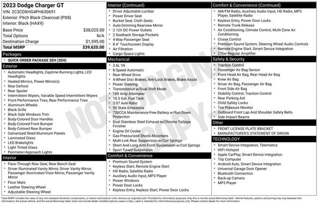 This Charger GT boasts a range of premium features that elevate the driving experience. Enjoy the convenience of dual-zone automatic climate control, the versatility of a power driver's seat, and the connectivity of the Uconnect 4C infotainment system with an 8.4-inch touchscreen display. The ParkView Rear Back-Up Camera and integrated voice command with Bluetooth further enhance the vehicle's user-friendly capabilities.