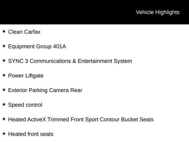 Slip into the heated, power-adjustable front seats and experience the comfort and convenience of the SYNC 3 infotainment system, complete with navigation, voice control, and a rearview camera. The power liftgate and 19-inch machined-face aluminum wheels add a touch of sophistication, while the advanced safety features, including blind spot monitoring and lane-keeping assist, provide peace of mind on every journey.