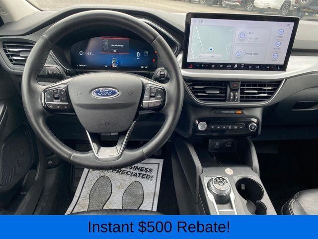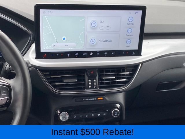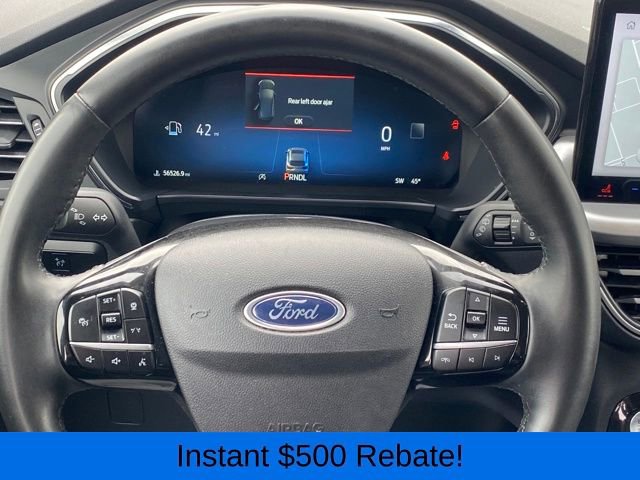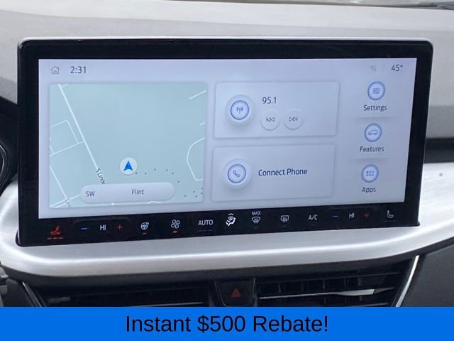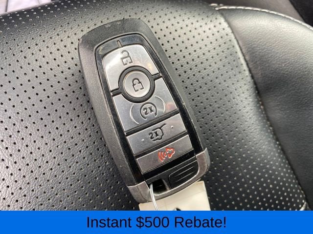 2.91 Axle Ratio, 4-Wheel Disc Brakes, 6 Speakers, ABS brakes, Air Conditioning, Alloy wheels, AM/FM radio: SiriusXM, AM/FM Stereo, Auto High-beam Headlights, Auto-dimming Rear-View mirror, Automatic temperature control, Brake assist, Bumpers: body-color, Compass, Delay-off headlights, Driver door bin, Driver vanity mirror, Dual front impact airbags, Dual front side impact airbags, Electronic Fuel Door Release, Electronic Stability Control, Emergency communication system: SYNC 4 911 Assist, Exterior Parking Camera Rear, FordPass Connect, Four wheel independent suspension, Front anti-roll bar, Front Bucket Seats, Front Center Armrest, Front dual zone A/C, Front fog lights, Front reading lights, Fully automatic headlights, Garage door transmitter, Heated ActiveX Trimmed Front Sport Contour Bucket Seats, Heated door mirrors, Heated front seats, Heated steering wheel, Illuminated entry, Knee airbag, Low tire pressure warning, Memory seat, Navigation system: Connected Navigation, Neutral Towing Capability, Occupant sensing airbag, Outside temperature display, Overhead airbag, Overhead console, Panic alarm, Passenger door bin, Passenger vanity mirror, Pedestrian Alert Sounder, Power door mirrors, Power driver seat, Power Liftgate, Power passenger seat, Power steering, Power windows, Radio data system, Rain sensing wipers, Rear anti-roll bar, Rear reading lights, Rear seat center armrest, Rear window defroster, Rear window wiper, Remote keyless entry, Security system, Speed control, Speed-sensing steering, Speed-Sensitive Wipers, Split folding rear seat, Spoiler, Steering wheel mounted audio controls, SYNC 4 w/Enhanced Voice Recognition, Telescoping steering wheel, Tilt steering wheel, Traction control, Trip computer, Variably intermittent wipers, Wheels: 19 Machined-Face Aluminum.