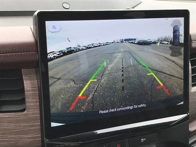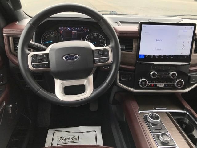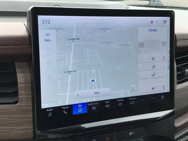 Navigation system: Connected Navigation, 12 Speakers, 3.31 Axle Ratio, 3rd row seats: split-bench, 4-Wheel Disc Brakes, ABS brakes, Adjustable pedals, Air Conditioning, Alloy wheels, AM/FM radio: SiriusXM with 360L, Auto High-beam Headlights, Auto-dimming door mirrors, Auto-dimming Rear-View mirror, Automatic temperature control, Brake assist, Bumpers: body-color, Compass, Delay-off headlights, Driver door bin, Driver vanity mirror, Dual front impact airbags, Dual front side impact airbags, Electronic Stability Control, Emergency communication system: SYNC 4 911 Assist, Exterior Parking Camera Rear, Four wheel independent suspension, Front anti-roll bar, Front Bucket Seats, Front Center Armrest, Front dual zone A/C, Front fog lights, Front reading lights, Fully automatic headlights, Garage door transmitter, Heated & Ventilated Leather Front Captain's Chairs, Heated door mirrors, Heated front seats, Heated rear seats, Heated steering wheel, Illuminated entry, Leather steering wheel, Low tire pressure warning, Memory seat, Occupant sensing airbag, Outside temperature display, Overhead airbag, Overhead console, Panic alarm, Passenger door bin, Passenger vanity mirror, Pedal memory, Power door mirrors, Power driver seat, Power Liftgate, Power moonroof, Power passenger seat, Power steering, Power windows, Radio data system, Radio: B&O Sound System by Bang & Olufsen, Rain sensing wipers, Rear air conditioning, Rear anti-roll bar, Rear reading lights, Rear window defroster, Rear window wiper, Reclining 3rd row seat, Remote keyless entry, Security system, SiriusXM w/360L, Speed control, Speed-sensing steering, Speed-Sensitive Wipers, Split folding rear seat, Spoiler, Steering wheel memory, Steering wheel mounted audio controls, SYNC 4 w/Enhanced Voice Recognition, Tachometer, Telescoping steering wheel, Tilt steering wheel, Traction control, Trip computer, Turn signal indicator mirrors, Variably intermittent wipers, Ventilated front seats, Voltmeter, Wheels: 20 Bright Machined Aluminum, Navigation system: Connected Navigation.