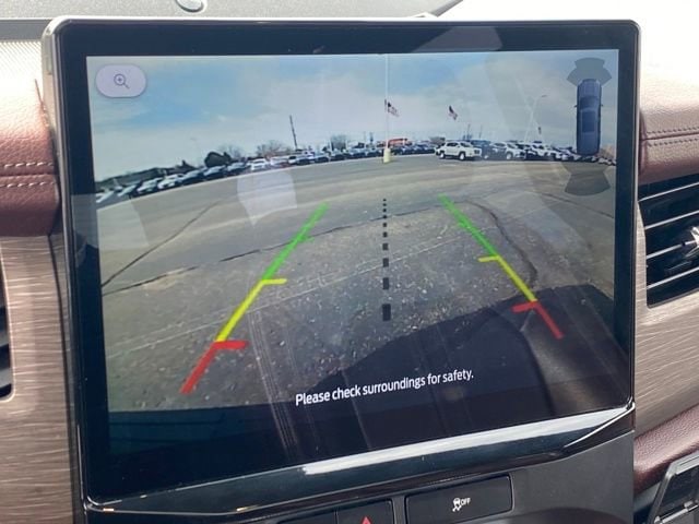 Navigation system: Connected Navigation, 12 Speakers, 3.31 Axle Ratio, 3rd row seats: split-bench, 4-Wheel Disc Brakes, ABS brakes, Adjustable pedals, Air Conditioning, Alloy wheels, AM/FM radio: SiriusXM with 360L, Auto High-beam Headlights, Auto-dimming door mirrors, Auto-dimming Rear-View mirror, Automatic temperature control, Brake assist, Bumpers: body-color, Compass, Delay-off headlights, Driver door bin, Driver vanity mirror, Dual front impact airbags, Dual front side impact airbags, Electronic Stability Control, Emergency communication system: SYNC 4 911 Assist, Exterior Parking Camera Rear, Four wheel independent suspension, Front anti-roll bar, Front Bucket Seats, Front Center Armrest, Front dual zone A/C, Front fog lights, Front reading lights, Fully automatic headlights, Garage door transmitter, Heated & Ventilated Leather Front Captain's Chairs, Heated door mirrors, Heated front seats, Heated rear seats, Heated steering wheel, Illuminated entry, Leather steering wheel, Low tire pressure warning, Memory seat, Occupant sensing airbag, Outside temperature display, Overhead airbag, Overhead console, Panic alarm, Passenger door bin, Passenger vanity mirror, Pedal memory, Power door mirrors, Power driver seat, Power Liftgate, Power moonroof, Power passenger seat, Power steering, Power windows, Radio data system, Radio: B&O Sound System by Bang & Olufsen, Rain sensing wipers, Rear air conditioning, Rear anti-roll bar, Rear reading lights, Rear window defroster, Rear window wiper, Reclining 3rd row seat, Remote keyless entry, Security system, SiriusXM w/360L, Speed control, Speed-sensing steering, Speed-Sensitive Wipers, Split folding rear seat, Spoiler, Steering wheel memory, Steering wheel mounted audio controls, SYNC 4 w/Enhanced Voice Recognition, Tachometer, Telescoping steering wheel, Tilt steering wheel, Traction control, Trip computer, Turn signal indicator mirrors, Variably intermittent wipers, Ventilated front seats, Voltmeter, Wheels: 20 Bright Machined Aluminum, Navigation system: Connected Navigation.