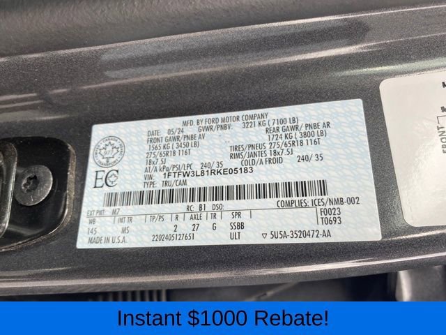 Navigation system: Connected Navigation, 3.31 Axle Ratio, 4-Wheel Disc Brakes, 6 Speakers, ABS brakes, Air Conditioning, Alloy wheels, AM/FM radio: SiriusXM with 360L, Auto High-beam Headlights, Auto-dimming Rear-View mirror, Automatic temperature control, Brake assist, Bumpers: chrome, Chrome wheels, Cloth 40/20/40 Front Seat, Compass, Delay-off headlights, Driver door bin, Driver vanity mirror, Dual front impact airbags, Dual front side impact airbags, Electronic Stability Control, Emergency communication system: SYNC 4 911 Assist, Front anti-roll bar, Front Center Armrest w/Storage, Front dual zone A/C, Front fog lights, Front reading lights, Front wheel independent suspension, Fully automatic headlights, Heated door mirrors, Illuminated entry, Low tire pressure warning, Occupant sensing airbag, Outside temperature display, Overhead airbag, Overhead console, Panic alarm, Passenger door bin, Passenger vanity mirror, Power door mirrors, Power driver seat, Power steering, Power windows, Radio data system, Radio: AM/FM SiriusXM w/360L, Rear reading lights, Rear step bumper, Rear window defroster, Remote keyless entry, Security system, Speed control, Split folding rear seat, Steering wheel mounted audio controls, SYNC 4 w/Enhanced Voice Recognition, Tachometer, Telescoping steering wheel, Tilt steering wheel, Traction control, Trip computer, Variably intermittent wipers, Voltmeter, Wheels: 18 Chrome-Like PVD, Navigation system: Connected Navigation.