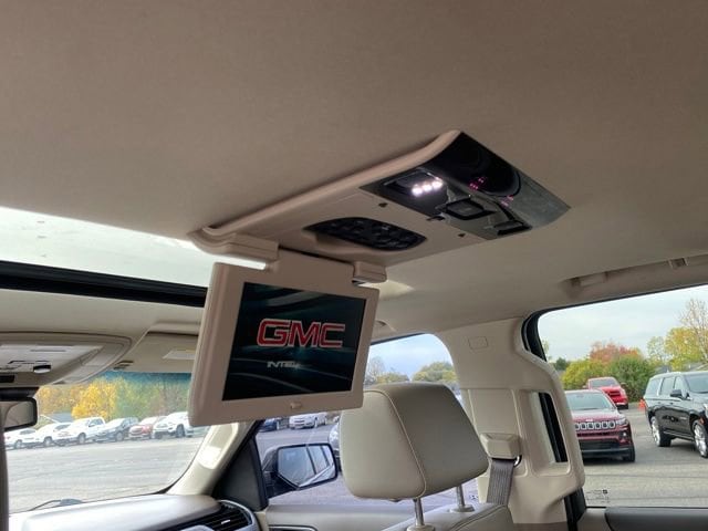 Enhanced Driver Alert Package, Forward Collision Alert, IntelliBeam Automatic High Beam On/Off, Lane Keep Assist w/Lane Departure Warning, Low Speed Forward Automatic Braking, 22 6-Spoke Split Chrome (LPO) Wheels, 3.08 Rear Axle Ratio, 3rd row seats: split-bench, 4-Wheel Antilock Disc Brakes, 4-Wheel Disc Brakes, 5 Auxiliary 12-volt Power Outlets, 9 Speakers, ABS brakes, Adjustable pedals, Air Conditioning, All-Weather Floor Mats, Alloy wheels, AM/FM radio: SiriusXM, Apple CarPlay/Android Auto, Auto High-beam Headlights, Auto-dimming door mirrors, Auto-dimming Rear-View mirror, Automatic temperature control, Black All-Weather Cargo Mat (LPO), Black Assist Steps w/Chrome Strip, Bose Premium 9-Speaker System, Brake assist, Bright Bodyside Moldings, Bumpers: body-color, CD Player, CD player, Chrome Grille Insert (LPO), Compass, Delay-off headlights, Driver door bin, Driver vanity mirror, Dual front impact airbags, Dual front side impact airbags, Electronic Stability Control, Emergency communication system: OnStar and GMC connected services capable, Exterior Parking Camera Rear, Front anti-roll bar, Front Bucket Seats, Front Center Armrest, Front dual zone A/C, Front fog lights, Front reading lights, Front wheel independent suspension, Full-Feature Reclining Bucket Seats, Fully automatic headlights, Garage door transmitter, Hands Free Power Programmable Rear Liftgate, Heated & Ventilated Driver & Front Passenger Seats, Heated door mirrors, Heated front seats, Heated Leather-Wrapped Steering Wheel, Heated rear seats, Heated steering wheel, Illuminated entry, Inside Rear-View Auto-Dimming Mirror, Interior Protection Package (LPO), Lane Change Alert w/Side Blind Zone Alert, Low tire pressure warning, Memory Package, Memory seat, Occupant sensing airbag, Open Road Package, Outside temperature display, Overhead airbag, Overhead console, Panic alarm, Passenger door bin, Passenger vanity mirror, Passive Entry System, Pedal memory, Perforated Leather-Appointed Seat Trim, Polished Exhaust Tip, Power door mirrors, Power driver seat, Power Liftgate, Power passenger seat, Power Release 2nd Row 60/40 Split-Folding Bench Seat, Power Release 2nd Row Bucket Seats, Power steering, Power Tilt & Telescopic Steering Column, Power Tilt-Sliding Sunroof w/Express-Open/Close, Power windows, Power-Adjustable Pedals For Accelerator & Brake, Preferred Equipment Group 4SA, Premium audio system: IntelliLink, Premium Edition, Premium Smooth Ride Suspension Package, Push Button Keyless Start, Radio: AM/FM/SiriusXM, Radio: AM/FM/SiriusXM w/Navigation, Rain sensing wipers, Rear air conditioning, Rear anti-roll bar, Rear Cross Traffic Alert, Rear reading lights, Rear Seat Blu-Ray/DVD Entertainment System, Rear seat center armrest, Rear window defroster, Rear window wiper, Red Illuminated Door Sill Plates w/GMC Logo (LPO), Remote Keyless Entry, Remote keyless entry, Roof rack: rails only, Security system, SiriusXM NavTraffic, SiriusXM Radio, Speed control, Speed-sensing steering, Split folding rear seat, Spoiler, Steering wheel memory, Steering wheel mounted audio controls, Tachometer, Telescoping steering wheel, Tilt steering wheel, Traction control, Trip computer, Turn signal indicator mirrors, Universal Home Remote, Variably intermittent wipers, Ventilated front seats, Voltmeter, Wheels: 18 x 8.5 Bright Machined Aluminum, Wheels: 22 x 9 Steel Interim (LPO), Enhanced Driver Alert Package, Forward Collision Alert, IntelliBeam Automatic High Beam On/Off, Lane Keep Assist w/Lane Departure Warning, Low Speed Forward Automatic Br