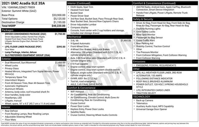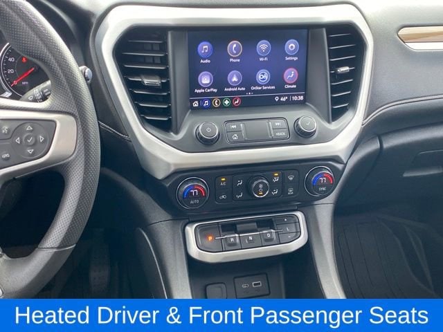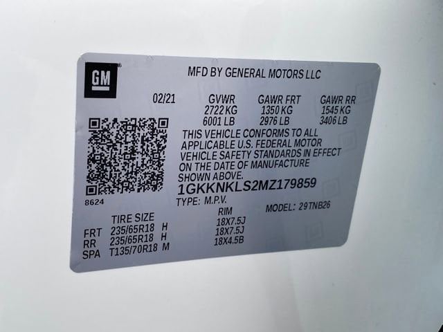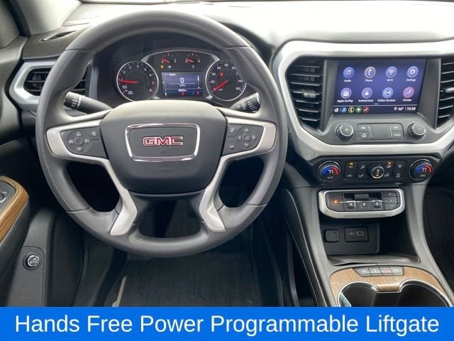 120-Volt Power Outlet, 8-Way Power Driver Seat Adjuster, Brushed Aluminum Roof Rails, Driver Convenience Package, Hands Free Power Programmable Liftgate, Heated Driver & Front Passenger Seats, Power Driver Lumbar Control Seat Adjuster, Remote Start, 155 Amp Alternator, 1st & 2nd Row All-Weather Floor Liner (LPO), 3rd Row All-Weather Floor Liner (LPO), 3rd row seats: split-bench, 4-Way Manual Driver Seat Adjuster, 4-Way Manual Passenger Seat Adjuster, 4-Wheel Disc Brakes, 6 Speakers, 6-Passenger (2-2-2 Seating Configuration), 6-Speaker Audio System Feature, ABS brakes, Air Conditioning, Alloy wheels, AM/FM radio: SiriusXM, Apple CarPlay/Android Auto, Automatic Emergency Braking, Automatic temperature control, Brake assist, Bright Wheel Locks (LPO), Bumpers: body-color, Compass, Delay-off headlights, Driver door bin, Driver vanity mirror, Dual front impact airbags, Dual front side impact airbags, Dual SkyScape 2-Panel Power Sunroof, Electronic Stability Control, Emergency communication system: OnStar and GMC connected services capable, Floor Liner Package (LPO), Following Distance Indicator, Forward Collision Alert, Four wheel independent suspension, Front & Rear Park Assist, Front anti-roll bar, Front Bucket Seats, Front Center Armrest, Front dual zone A/C, Front Pedestrian Braking, Front reading lights, Fully automatic headlights, Heated door mirrors, Illuminated entry, Integrated Cargo Liner (LPO), IntelliBeam Automatic High-Beam Headlamps, Knee airbag, Lane Keep Assist w/Lane Departure Warning, Low tire pressure warning, Occupant sensing airbag, Outside temperature display, Overhead airbag, Overhead console, Panic alarm, Passenger door bin, Passenger vanity mirror, Power door mirrors, Power steering, Power windows, Preferred Equipment Group 3SA, Premium audio system: GMC Infotainment System, Premium Cloth Seat Trim, Radio data system, Radio: AM/FM w/8 Diagonal Multi-Touch Display, Rear air conditioning, Rear anti-roll bar, Rear reading lights, Rear window defroster, Rear window wiper, Remote keyless entry, Security system, SiriusXM Radio, Speed control, Speed-sensing steering, Spoiler, Steering wheel mounted audio controls, Tachometer, Telescoping steering wheel, Tilt steering wheel, Traction control, Trip computer, Turn signal indicator mirrors, Universal Home Remote, Variably intermittent wipers, Voltmeter, Wheels: 18 Machined Aluminum w/Dark Accents, Wireless Apple CarPlay/Wireless Android Auto, 120-Volt Power Outlet, 8-Way Power Driver Seat Adjuster, Brushed Aluminum Roof Rails, Driver Convenience Package, Hands Free Power Programmable Liftgate, Heated Driver & Front Passenger Seats, Power Driver Lumbar Control Seat Adjuster, Remote Start.