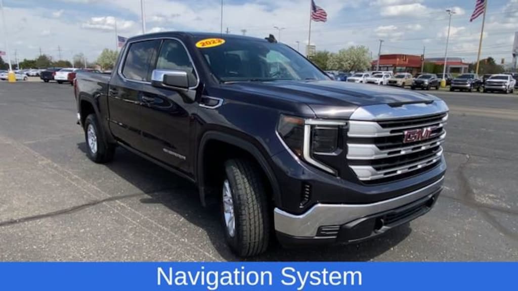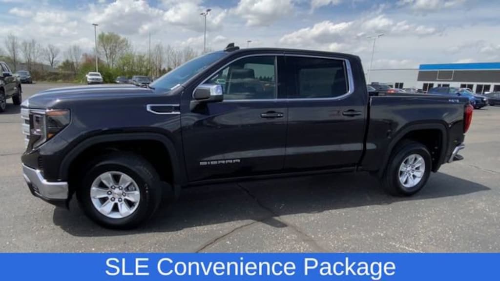 10-Way Power Driver Seat Adjuster w/Lumbar, Auto-Locking Rear Differential, Dual-Zone Automatic Climate Control, Electric Rear-Window Defogger, Heated Driver & Front Outboard Passenger Seating, Heated Steering Wheel, LED Cargo Area Lighting, Manual Tilt-Wheel & Telescoping Steering Column, Navigation System, Remote Start Package, Remote Vehicle Starter System, SLE Convenience Package, SLE Value Package, Theft Deterrent System (Unauthorized Entry), Trailering Package, 120-Volt Bed Mounted Power Outlet, 120-Volt Instrument Panel Power Outlet, 2 Charge/Data USB Ports, 2 Type-C Charge-Only Rear USB Ports, 220 Amp Alternator, 3 Years of OnStar & Connected Services Plan, 3.42 Rear Axle Ratio, 3.42 Rear Axle Ratio w/Max Trailering Pkg, 4-Way Manual Passenger Seat Adjuster, 4-Wheel Disc Brakes, 6 Speakers, 6-Speaker Audio System Feature, ABS brakes, Air Conditioning, All-Weather Floor Liner (LPO), Alloy wheels, AM/FM radio: SiriusXM with 360L, Apple CarPlay/Android Auto, Auto High-beam Headlights, Automatic Emergency Braking, Automatic temperature control, Brake assist, Buckle to Drive, Bumpers: chrome, Chrome Header w/Medium Silver Grille Insert Bars, Cloth Seat Trim, Color-Keyed Carpeting Floor Covering, Compass, Deep-Tinted Glass, Delay-off headlights, Driver door bin, Driver vanity mirror, Dual front impact airbags, Dual front side impact airbags, Electrical Steering Column Lock, Electronic Stability Control, Emergency communication system: OnStar and GMC Connected Services capable, Exterior Parking Camera Rear, Following Distance Indicator, Forward Collision Alert, Front 40/20/40 Split-Bench Seat, Front anti-roll bar, Front Center Armrest w/Storage, Front dual zone A/C, Front Frame-Mounted Black Recovery Hooks, Front Pedestrian Braking, Front reading lights, Front Rubberized-Vinyl Floor Mats, Front wheel independent suspension, Fully automatic headlights, GMC Connected Access Capable, HD Rear Vision Camera, Heated door mirrors, Heated front seats, Heated steering wheel, Hitch Guidance, Illuminated entry, IntelliBeam Automatic High Beam On/Off, Keyless Open & Start, Lane Keep Assist w/Lane Departure Warning, Low tire pressure warning, Not Equipped w/Steering Column Lock, Occupant sensing airbag, OnStar & GMC Connected Services Capable, Outside temperature display, Overhead airbag, Overhead console, Panic alarm, Passenger door bin, Passenger vanity mirror, Power Door Locks, Power door mirrors, Power driver seat, Power Front Windows w/Driver Express Up/Down, Power Front Windows w/Passenger Express Down, Power Rear Windows w/Express Down, Power steering, Power windows, Preferred Equipment Group 3SA, Premium audio system: GMC Infotainment System, Push Button Start, Radio data system, Radio: Premium GMC Infotainment Audio System, Rear reading lights, Rear Rubberized-Vinyl Floor Mats, Rear step bumper, Rear window defroster, Remote keyless entry, Security system, SiriusXM w/360L, Speed control, Speed-sensing steering, Split folding rear seat, Standard Suspension Package, Steering Wheel Audio Controls, Steering wheel mounted audio controls, Tachometer, Telescoping steering wheel, Tilt steering wheel, Traction control, Trip computer, V