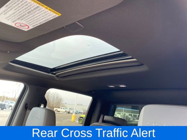 Automatic Emergency Braking, Denali Ultimate Package, Driver Alert Package I, Driver Alert Package II, Following Distance Indicator, Forward Collision Alert, Hill Descent Control, IntelliBeam Automatic High Beam On/Off, Lane Change Alert w/Side Blind Zone Alert, Lane Departure Warning System, Navigation System, Power Sunroof, Rear Cross Traffic Alert, Technology Package, X31 Off-Road Package, 10-Way Power Driver Seat Adjuster w/Lumbar, 10-Way Power Passenger Seat Adjuster w/Lumbar, 12-Volt Rear Auxiliary Power Outlet, 120-Volt Bed Mounted Power Outlet, 120-Volt Instrument Panel Power Outlet, 2 USB Ports, 2 USB Ports (1st Row), 2-Speed Active Transfer Case, 220 Amps Alternator, 2nd Row Dual USB Charge-Only Ports, 4-Wheel Disc Brakes, 6 Rectangular Chromed Tubular Assist Steps, 7 Speakers, ABS brakes, Air Conditioning, All-Weather Floor Liners (LPO), Alloy wheels, AM/FM radio: SiriusXM with 360L, Apple CarPlay/Android Auto, Auto High-beam Headlights, Auto-dimming door mirrors, Auto-dimming Rear-View mirror, Automatic temperature control, Bed View Camera w/2 Trailer Camera Provisions, Bose Premium 7 Speaker Sound System, Brake assist, Bumpers: body-color, Compass, Compass Located In Instrument Cluster, Deep-Tinted Glass, Delay-off headlights, Driver door bin, Driver Memory, Driver vanity mirror, Dual front impact airbags, Dual front side impact airbags, Electric Rear-Window Defogger, Electrical Lock Control Steering Column, Electronic Stability Control, Emergency communication system: OnStar and GMC Connected Services capable, Engine Block Heater, Exhaust Brake, Exterior Parking Camera Rear, Floor-Mounted Center Console, Forge Perforated Leather-Appointed Front Seat Trim, Front anti-roll bar, Front Bucket Seats, Front Center Armrest, Front Chrome Recovery Hooks, Front dual zone A/C, Front fog lights, Front reading lights, Front wheel independent suspension, Fully automatic headlights, Garage door transmitter, Genuine wood console insert, Genuine wood door panel insert, GMC Connected Access Capable, Gooseneck/5th Wheel Prep Package, HD Surround Vision w/2 Trailer View Camera Provisions, Heated & Ventilated Front Bucket Seats, Heated door mirrors, Heated Driver & Front Outboard Passenger Seats, Heated front seats, Heated steering wheel, Heavy-Duty 80 Amp Battery, High Idle Switch, Hitch Guidance w/Hitch View, Illuminated entry, In-Vehicle Trailering System App, Inside Rearview Auto-Dimming Rear Camera Mirror, Integrated Trailer Brake Controller, Keyless Open & Start, LED Cargo Area Lighting, LED Smoked Amber Roof Marker Lamps, Low tire pressure warning, Manual Tilt-Wheel/Telescoping Steering Column, Memory seat, Multicolor 15 Diagonal Head-Up Display, Not Equipped w/Heated 2nd Row Outboard Seats, Occupant sensing airbag, Off-Road Suspension, OnStar & GMC Connected Services Capable, Outside temperature display, Overhead airbag, Overhead console, Panic alarm, Passenger door bin, Passenger vanity mirror, Pickup Box, Polished Exhaust Tip, Power Door Locks, Power door mirrors, Power driver seat, Power Front Passenger Windows w/Express Up/Down, Power passenger seat, Power Rear Windows w/Express Down, Power Sliding Rear Window w/Defogger, Power steering, Power windows, Powe