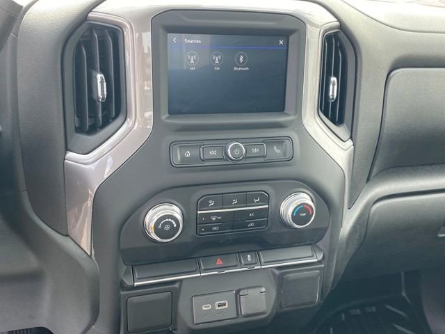 Suspension Package, 17 Steel Wheels, 2 Speakers, 2-Speaker Audio System Feature, 2-Speed Electronic Shift Transfer Case, 3.73 Rear Axle Ratio, 4-Way Manual Driver Seat Adjuster, 4-Way Manual Passenger Seat Adjuster, 4-Wheel Disc Brakes, ABS brakes, Air Conditioning, AM/FM radio, Apple CarPlay/Android Auto, Brake assist, Bumpers: chrome, Chrome Surround Grille w/Black Mesh, Delay-off headlights, Driver door bin, Dual front impact airbags, Dual front side impact airbags, Electronic Stability Control, Front 40/20/40 Split-Bench Seats, Front anti-roll bar, Front Center Armrest w/Storage, Front reading lights, Front wheel independent suspension, Fully automatic headlights, Heavy-Duty 80 Amp Battery, Low tire pressure warning, Manual Windows, Occupant sensing airbag, Outside temperature display, Overhead airbag, Overhead console, Passenger door bin, Passenger vanity mirror, Pickup Box, Power steering, Preferred Equipment Group 1SA, Premium audio system: GMC Infotainment System, Radio: AM/FM w/GMC Infotainment System, Rear step bumper, Solar Absorbing Glass, Tachometer, Tilt steering wheel, Traction control, Trip computer, Variably intermittent wipers, Vinyl Seat Trim, Voltmeter, Suspension Package.