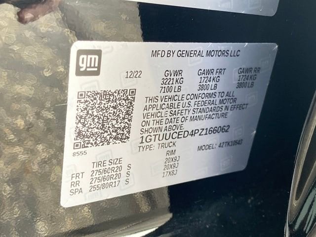 Navigation System, 10-Way Power Driver Seat Adjuster w/Lumbar, 120-Volt Bed Mounted Power Outlet, 120-Volt Instrument Panel Power Outlet, 170 Amp Alternator, 2 Charge/Data USB Ports, 2 Type-C Charge-Only Rear USB Ports, 220 Amp Alternator, 4-Way Manual Passenger Seat Adjuster, 4-Wheel Disc Brakes, 6 Speakers, 6-Speaker Audio System Feature, ABS brakes, Air Conditioning, All-Weather Floor Liner (LPO), Alloy wheels, AM/FM radio, Apple CarPlay/Android Auto, Auto High-beam Headlights, Auto-Locking Rear Differential, Automatic Emergency Braking, Automatic temperature control, Auxiliary External Transmission Oil Cooler, Black GMC Emblems (LPO), Body Color Header w/Gloss Black Mesh Grille Bars, Brake assist, Buckle to Drive, Bumpers: body-color, Cloth Rear Seat w/Storage Package, Cloth Seat Trim, Color-Keyed Carpeting Floor Covering, Compass, Deep-Tinted Glass, Delay-off headlights, Driver door bin, Driver vanity mirror, Dual Exhaust System, Dual front impact airbags, Dual front side impact airbags, Electric Rear-Window Defogger, Electrical Steering Column Lock, Electronic Stability Control, Emergency communication system: OnStar and GMC connected services capable, External Engine Oil Cooling, Following Distance Indicator, Forward Collision Alert, Front 40/20/40 Split-Bench Seat, Front anti-roll bar, Front Center Armrest w/Storage, Front dual zone A/C, Front fog lights, Front Frame-Mounted Black Recovery Hooks, Front Pedestrian Braking, Front reading lights, Front Rubberized-Vinyl Floor Mats, Front wheel independent suspension, Fully automatic headlights, GMC Connected Access Capable, HD Rear Vision Camera, Heated door mirrors, Heated Driver & Front Outboard Passenger Seating, Heated front seats, Heated steering wheel, Heavy-Duty Air Filter, High Capacity Suspension Package, Hill Descent Control, Hitch Guidance, Illuminated entry, IntelliBeam Automatic High Beam On/Off, Keyless Open & Start, Lane Keep Assist w/Lane Departure Warning, LED Cargo Area Lighting, Low tire pressure warning, Manual Tilt-Wheel & Telescoping Steering Column, Not Equipped w/Steering Column Lock, Not Equipped with GMC MultiPro Tailgate, Occupant sensing airbag, Off-Road Suspension, OnStar & GMC Connected Services Capable, Outside temperature display, Overhead airbag, Overhead console, Panic alarm, Passenger door bin, Passenger vanity mirror, Power Door Locks, Power door mirrors, Power driver seat, Power Front Windows w/Driver Express Up/Down, Power Front Windows w/Passenger Express Down, Power Rear Windows w/Express Down, Power steering, Power windows, Preferred Equipment Group 3SB, Premium audio system: GMC Infotainment System, Push Button Start, Radio data system, Radio: Premium GMC Infotainment Audio System, Rear reading lights, Rear Rubberized-Vinyl Floor Mats, Rear seat center armrest, Rear step bumper, Rear Wheelhouse Liners, Rear window defroster, Remote keyless entry, Remote Vehicle Starter System, Security system, SiriusXM w/360L, Speed control, Speed-sensing steering, Split folding rear seat, Spray-On Pickup Bed Liner w/GMC Logo, Standard Tailgate, Steering Wheel Audio Controls, Steering wheel mounted audio controls, Tachometer, Telescoping steering wheel, Theft Deterrent System (Unauthor