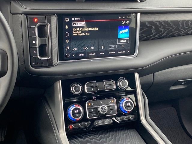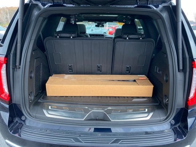 14 Speakers, 15 Diagonal Multi-Color Head-Up Display, 2 Presets For Outside Rearview Mirrors, 3 Years of GMC Connected Services, 3 Years of OnStar Safety & Security, 3 Years of OnStar Safety & Security (DISC), 3.23 Rear Axle Ratio, 3rd Row 60/40 Power-Folding Split-Bench Seat, 3rd row seats: split-bench, 4-Wheel Disc Brakes, ABS brakes, Adaptive Cruise Control, Adaptive suspension, Air Conditioning, All-Weather Cargo Mat (LPO), Alloy wheels, AM/FM radio: SiriusXM with 360L, AM/FM Stereo, Apple CarPlay/Android Auto, Auto High-beam Headlights, Auto-dimming door mirrors, Auto-dimming Rear-View mirror, Auto-leveling suspension, Automatic Emergency Braking, Automatic temperature control, Bodyside moldings, Bose 14-Speaker Surround w/CenterPoint, Brake assist, Bright Front & Rear Door Sill Plates, Bumpers: body-color, Chrome Door Handles w/Body-Color Strip, Compass, Delay-off headlights, Driver door bin, Driver vanity mirror, Dual Exhaust System, Dual front impact airbags, Dual front side impact airbags, Dual-Pane Panoramic Power Sunroof, Electronic Stability Control, Emergency communication system: OnStar and GMC connected services capable, Enhanced Automatic Emergency Braking, Floor Console, Following Distance Indicator, Forward Collision Alert, Four wheel independent suspension, Front & Rear Park Assist, Front anti-roll bar, Front Bucket Seats, Front Center Armrest, Front dual zone A/C, Front fog lights, Front Pedestrian Braking, Front reading lights, Fully automatic headlights, Galvano Bodyside Moldings, Garage door transmitter, Hands-Free Power Programmable Rear Liftgate, HD Surround Vision, Heads-Up Display, Heated & Ventilated Driver & Front Passenger Seats, Heated 2nd Row Outboard Position Seats, Heated door mirrors, Heated Driver & Front Passenger Seats, Heated front seats, Heated rear seats, Heated Steering Wheel, Heated steering wheel, Hill Descent Control, Illuminated entry, Illuminated Front Door Sill Plates (LPO), Illuminated Liftgate Sill Plate (LPO), Illuminated Mirror GMC Emblem (LPO), Inside Rear-View Auto-Dimming Mirror, IntelliBeam Automatic High Beam On/Off, Lane Change Alert w/Side Blind Zone Alert, Lane Keep Assist w/Lane Departure Warning, Low tire pressure warning, Magnetic Ride Control Suspension, Memory seat, Navigation System, Not Equipped w/4-Way Driver & Fr Pass Pwr Lumbar, Occupant sensing airbag, Outside Heated Power-Adjustable Mirrors, Outside temperature display, Overhead airbag, Overhead console, Panic alarm, Passenger door bin, Passenger vanity mirror, Perforated Leather Seating Surfaces, Power door mirrors, Power driver seat, Power Liftgate, Power passenger seat, Power Release 2nd Row Bucket Seats, Power steering, Power Tilt & Telescopic Steering Column, Power windows, Preferred Equipment Group 5SA, Rain sensing wipers, Rear air conditioning, Rear anti-roll bar, Rear Cross Traffic Alert, Rear Pedestrian Alert, Rear reading lights, Rear window defroster, Rear window wiper, Remote keyless entry, Roof rack: rails only, Safety Alert Seat, Security system, SiriusXM w/360L, Speed control, Speed-sensing steering, Split folding rear seat, Spoiler, Steering wheel memory, Steering wheel mounted audio controls, Tachometer, Telescoping steering